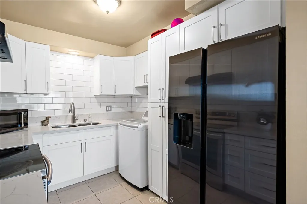 Welcome to this updated and move-in ready upper-level condo offering a spacious single-story layout with strong natural light throughout. The open-concept living and dining area features large windows, laminate wood flooring, and an easy flow into a versatile flex space ideal for a home office or study area. The remodeled kitchen includes white Shaker cabinets, quartz countertops, stainless steel range and hood, and convenient in-unit washer hookups. The generous bedroom offers excellent wall space and closet storage, while the updated bathroom features a newer vanity with quartz counters, upgraded fixtures, and a refreshed shower/tub with contemporary tile surround. Additional hallway cabinets provide valuable interior storage. This condo includes an assigned gated carport space and is located in a well-maintained community with low monthly HOA dues. The central Pomona location provides close access to shopping, groceries, restaurants, parks, and major transportation corridors with convenient access to the 71 and 10 freeways and Pomona Transit Center. With its updated interior, natural light, functional layout, in-unit laundry, and convenient proximity to daily amenities, this home presents a great opportunity for both an owner-occupant or an investment property.