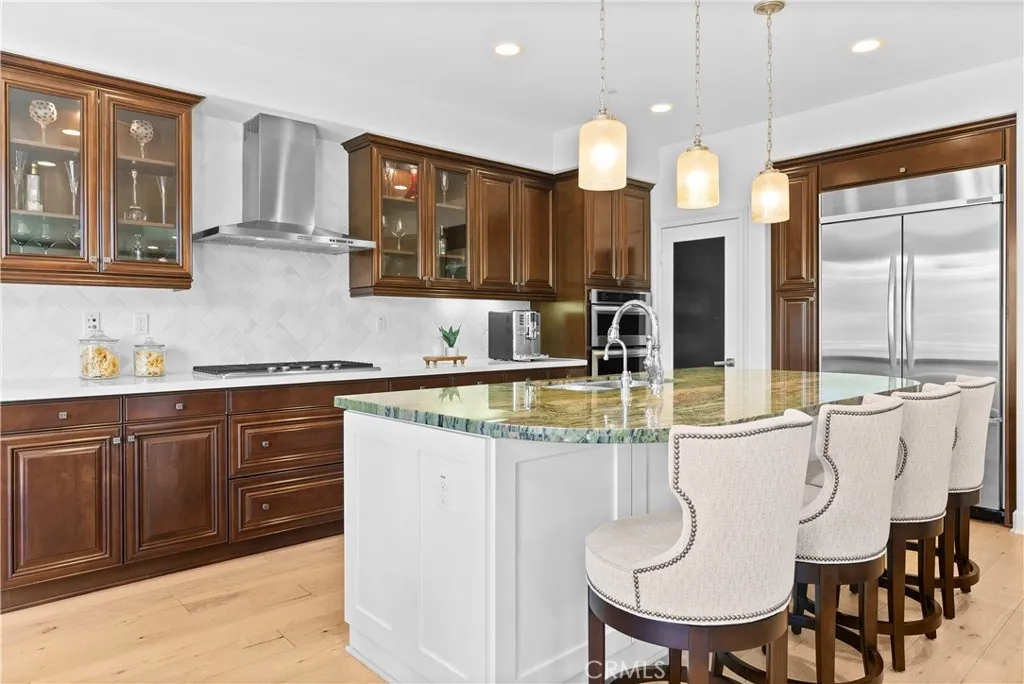 Welcome to 10 Alza, a former model home right here in the heart of Sendero in the award winning community of Rancho Mission Viejo! This one checks every box for design, comfort, lifestyle and has very low Mello-Roos. From the professional interior and exterior finishes to a long list of custom upgrades, this home makes it easy to move right in and start living the RMV dream with no projects, no landscaping, just enjoy. Youll love the open and inviting layout with 4 bedrooms, including one on the first floor, plus a spacious loft and a great room that ties it all together. The kitchen is a true standout, Caesarstone counters, a large island with seating, a breakfast nook with slide-away doors that open to the backyard, and top-of-the-line KitchenAid stainless steel appliances including a built-in fridge. Every detail was dialed in when this model was built from the hardwood plank floors, plantation shutters, and crown molding to the tongue-and-groove ceilings and built-in solar that helps keep your utility bills low. Upstairs, the primary suite feels like a retreat with a tray ceiling, mountain views, a walk-in closet, and a gorgeous spa-like bath finished in custom marble and tile. Step outside and youll see why this model home stands out, a beautifully designed backyard with a built-in BBQ, outdoor fireplace, and fountains, all with a view. This is one of those rare homes where everything just feels right: high-end, low-maintenance, and move-in ready. Exclusive to Rancho Mission Viejo residents are all amenities in the Villages of Sendero, Esencia, Rienda and future Villag