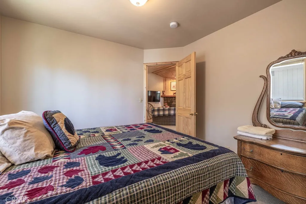 Pride of ownership shines throughout this beautifully maintained, single-story cabin built in 2007 and cherished by its original owner. Tucked among towering pines on a level corner lot near Maple Hill trails, this immaculate 3-bedroom, 2-bath home offers the perfect blend of mountain charm, comfort, and convenience. Step inside and be greeted by a light-filled open floor plan with tongue-and-groove knotty pine ceilings, warm wood finishes, and a cozy rock fireplace that anchors the spacious living area, ideal for relaxing after a day on the slopes or trails. The thoughtfully designed kitchen features solid wood cabinetry, granite-style counters, and modern appliances, seamlessly connecting to the dining area for effortless entertaining. Vaulted ceilings and large dual-pane windows bring in natural light and views of the surrounding trees, creating a sense of calm and connection to nature. The primary suite offers a peaceful retreat with its own private bath, while two additional bedrooms and a second full bathroom provide plenty of space for family and guests. The separate laundry room, attached one-car garage, and ample off-street parkingincluding space for a boat or small RVadd everyday practicality to this turnkey home. Outside, enjoy the mountain air from your covered front porch or stroll the quiet, paved neighborhood lined with mature pines. Whether youre searching for a full-time residence, a weekend getaway, or a smart investment property, this home checks every box. Located just minutes from Big Bear Lake, ski resorts, hiking and biking trails, and the village sho