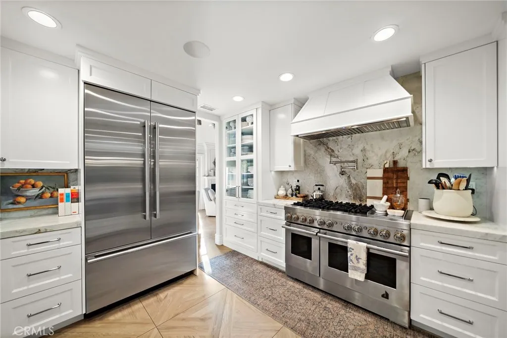 Don't miss out on this one-of-a-kind GEM! Located in the heart of Irvine's highly sought after Northwood community, this highly upgraded pool home with soaring vaulted ceilings offers 4 bedrooms, 2.5 baths, a large loft, and touches of custom design and quality craftsmanship that truly bring this unique, warm home to life! Elegant design elements include crown molding, wainscoting, skylights, romantic fireplace, custom wallpaper, dutch doors, high-end light fixtures, recessed lighting, and custom entertainment/closet built-ins throughout! Step outside into your own private oasis with NO HOMES BEHIND to find the real meaning of tranquility. Enjoy entertaining around the beautiful pool or relaxing under the gazebo while surrounded by the peaceful ambiance created by multiple water features, an abundance of greenery, incredible lighting, and the soothing aroma of jasmine. Recently remodeled, the luxurious kitchen is adorned with beautiful Calacutta marble, professional grade stainless steel appliances including a dual oven and large range hood, pot filler, oversized Rohl stainless steel sink, step-in pantry, and a peninsula with bar seating. Plenty of soft-close cabinetry, counter space, and bright light make this kitchen a living dream! The main floor primary suite is fit for royalty, with a custom built-in entertainment and storage system, french doors opening to the magnificent backyard, and a large bathroom with Pereira marble flooring and countertops, walk-in closet, oversized shower with dual shower heads, and a standalone tub. Head upstairs to find the large loft, three