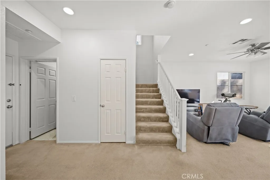 Welcome to this wonderful two-story home located in the picturesque Sierra Lakes Golf Course community of North Fontana where comfort and convenience come together with no HOA fees! This inviting 4-bedroom, 3-bathroom home features a spacious bonus room that can easily serve as a 4th bedroom or private office, offering flexibility to suit your needs. Step inside to discover an open and airy floor plan filled with natural light. The bright kitchen boasts ample cabinetry and seamlessly connects to the dining area and expansive living room. Sliding glass doors lead to a generous backyard ideal for entertaining guests or simply relaxing outdoors. Upstairs, the primary bedroom offers beautiful views of the golf course along with a private bathroom featuring dual sinks, a soaking tub, and a separate shower for ultimate comfort. All bedrooms are thoughtfully situated on the upper level, providing a sense of privacy from the main living areas. Additional highlights include fresh paint, recessed lighting, dual-pane windows, central AC, an individual laundry room, and a 2-car attached garage with direct home access. Perfectly positioned just minutes from local shopping, schools, parks, and freeway connections, this home delivers both convenience and an easygoing lifestyle. Dont miss this opportunity to make this charming home your own!