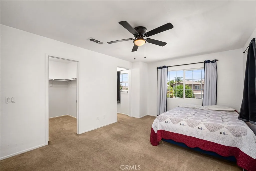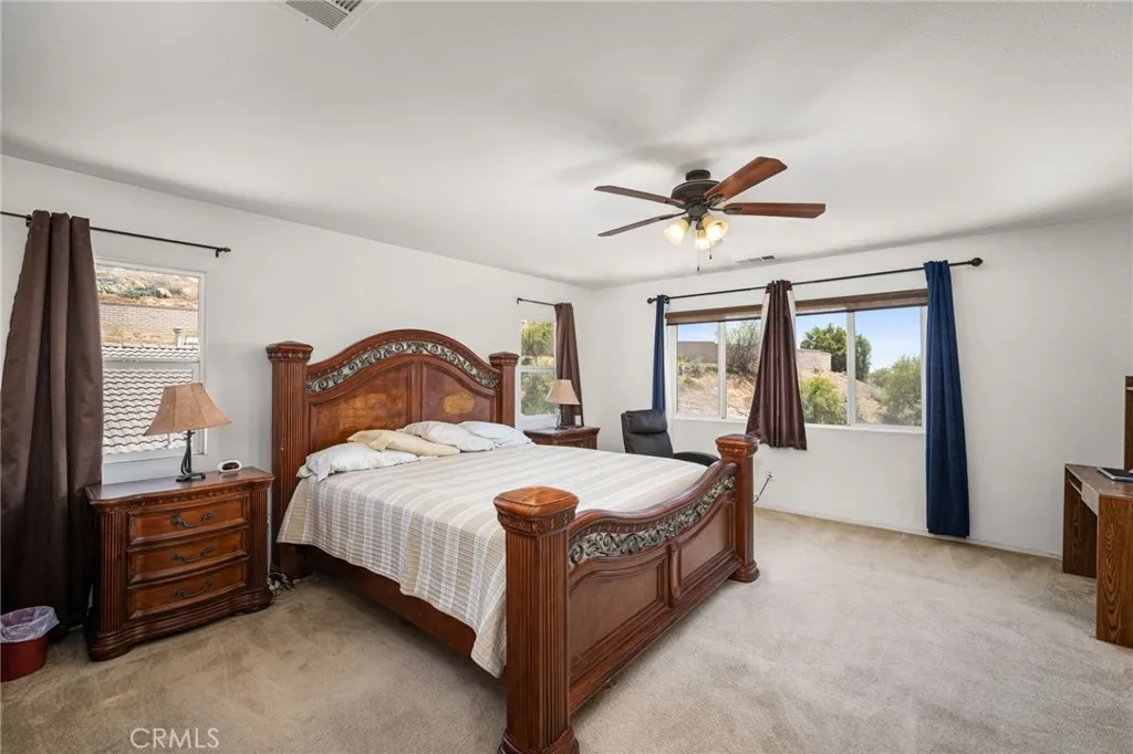 PAID OFF SOLAR Say goodbye to high energy bills with 16 fully paid solar panels already installed! This well-cared-for home is tucked away on a quiet cul-de-sac and offers stunning city views from multiple angles. Inside, youll find an open floor plan with a first-floor flex room that can easily be converted into a 4th bedroom, plus three full bathrooms for added convenience. Each of the three bedrooms features spacious walk-in closets, and the primary suite includes dual sinks for extra functionality. Additional upgrades include a newer water heater, dual-pane windows, rain gutters, and a fresh coat of exterior paint. The 9-foot vinyl patio cover with two ceiling fans creates a perfect space for relaxing outdoors year-round. A tandem garage provides flexible space for extra storage, a gym setup, or a third vehicle. Youll also love the homes proximity to top-rated elementary, middle, and high schools, Moreno Valley College, scenic hiking trails, and convenient shopping centers just minutes away. Dont miss this opportunity to own a move-in-ready home in one of Moreno Valleys most desirable pockets. Schedule your private showing today!