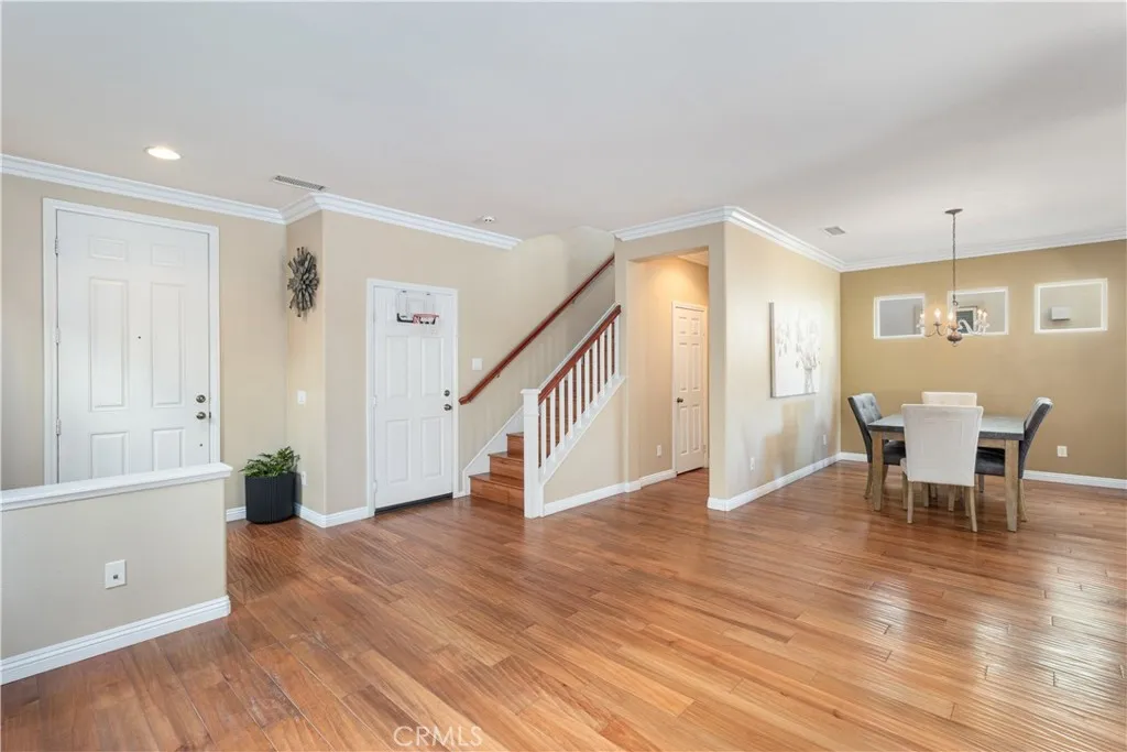 Step into this beautifully maintained 3-bedroom, 2.5-bath home in the sought-after Canyon Lake community. With gleaming hardwood floors throughout and elegant crown molding, every corner radiates charm and comfort. The open concept living area features recessed lighting with dimmers and a cozy fireplace, perfect for relaxing or entertaining. The gourmet kitchen boasts granite countertops, espresso cabinets, stainless-steel appliances, and an oversized breakfast island that flows seamlessly into the living space. Upstairs, enjoy a versatile loft (easily convertible to a 4th bedroom), a convenient laundry room, and spacious bedrooms. The luxurious primary suite includes a private balcony overlooking the backyard, a spa-like bathroom with a soaking tub, and a walk-in closet. Outside, the low-maintenance backyard is an entertainers paradise with a paved hardscape and built-in BBQ island. Enjoy central air and heat, a two-car garage, and proximity to scenic hiking trails, parks, and mountain views. Located near Canyon Lake with access to a Country Club and golf course.