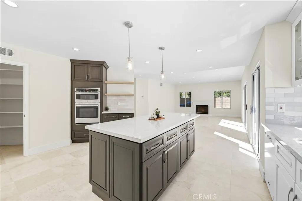 Tucked away on a peaceful cul-de-sac in one of Moorparks most desirable neighborhoods, this stunning residence perfectly blends timeless architecture with fresh, modern sophistication. With 5 bedrooms, 4 bathrooms, and approximately 3,631 sq ft of living space on a beautifully landscaped 9,400 sq ft lot, every detail has been thoughtfully designed for comfort, style, and connection. From the moment you arrive, the homes inviting curb appeal draws you inclassic stucco exterior, manicured greenery, and mature trees that frame the entryway with a sense of warmth and welcome. Inside, light pours through soaring windows, illuminating an open, airy floor plan defined by vaulted ceilings, graceful lines, and a seamless mix of stone and tile flooring. The formal living room sets the tone for elegant gatherings, with sunlight dancing across its spacious layout and a fireplace that anchors the room in quiet sophistication. Beyond, the heart of the homea completely renovated kitchenbalances modern function with timeless beauty. Crisp white shaker cabinetry with glass inserts, sleek quartz countertops, a large center island with breakfast bar, stainless-steel appliances, and pendant lighting create a space thats as inspiring as it is practical. The kitchen opens to the family room, where a second fireplace and sliding glass doors invite effortless indoor-outdoor living. Downstairs you will also find a spacious bedrooms complete with ensuite bathroom. Upstairs, the primary suite feels like a private retreat. A grand arched window fills the room with natural light, while the spa-inspired