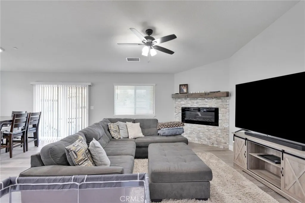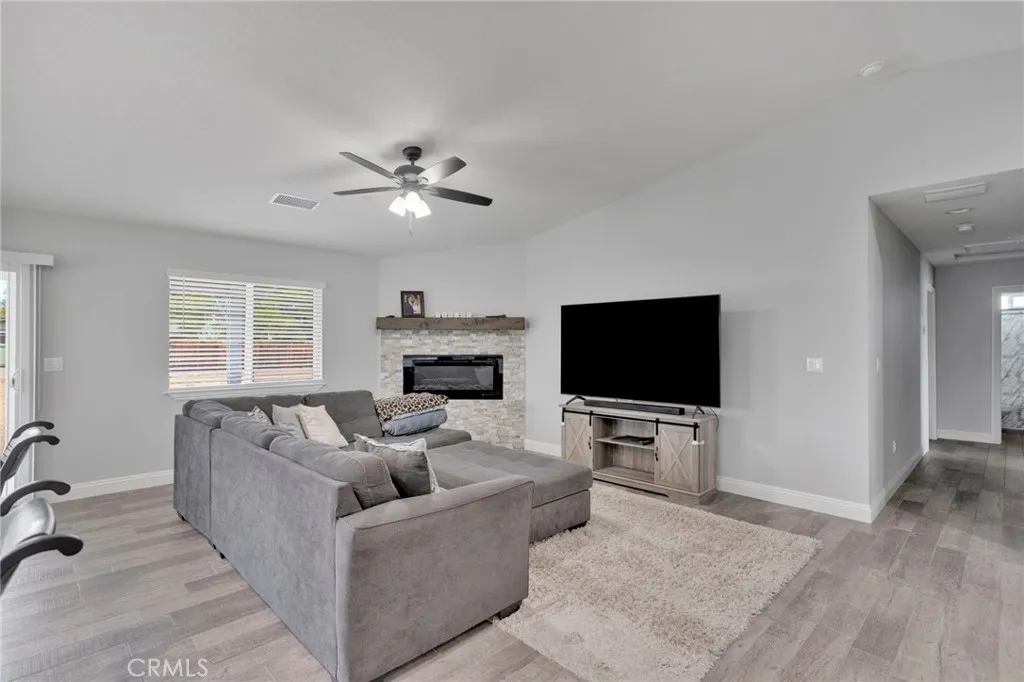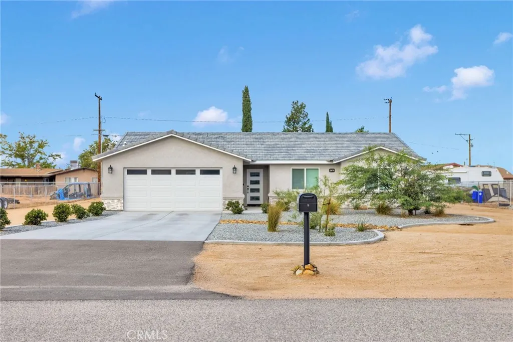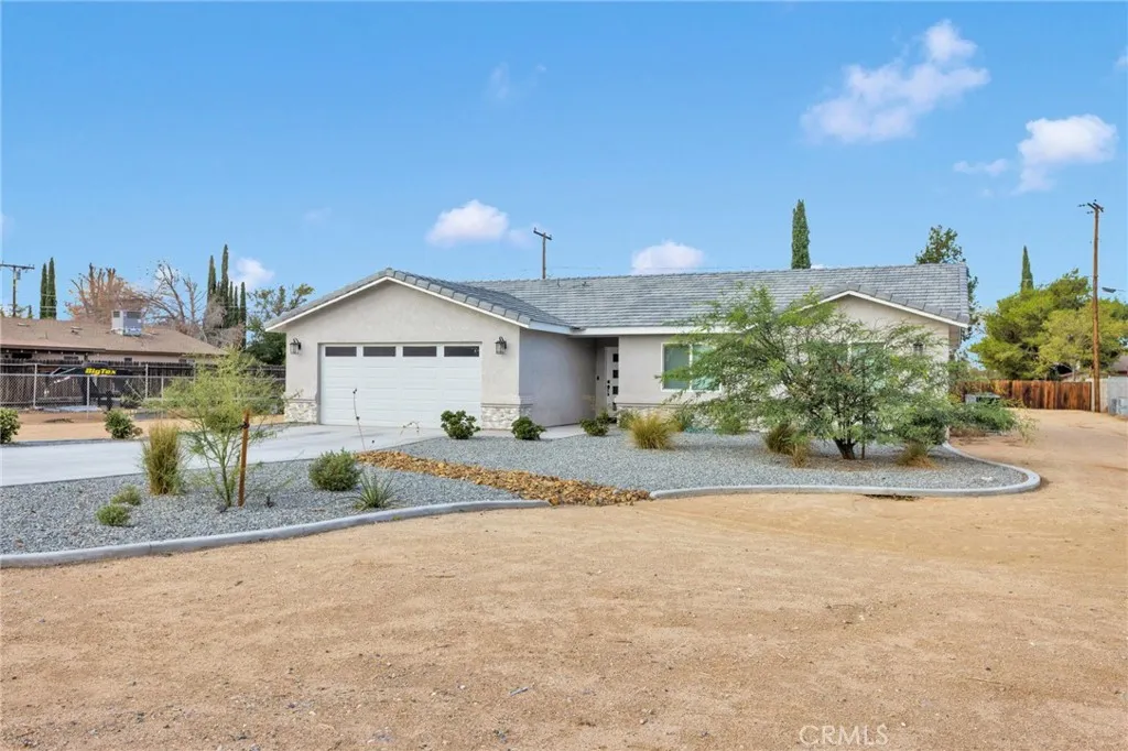 Welcome to this beautifully maintained single-story home located in the heart of Apple Valley! This 3-bedroom, 2-bathroom residence offers 1,523 square feet of modern living space with energy efficiency and low-maintenance design in mind. Step inside to find an open floor plan filled with natural light, featuring a spacious living room that seamlessly connects to the dining area and kitchen, perfect for entertaining or family gatherings. The kitchen boasts sleek countertops, modern cabinetry, and stainless steel appliances. The primary suite includes a private ensuite bathroom and generous closet space, while the additional bedrooms are ideal for family, guests, or a home office. Enjoy year round comfort with paid off solar panels, helping you save on energy bills. Outside, the property showcases landscaping, a clean desert aesthetic, and a wide concrete driveway leading to a two-car garage. Situated in a peaceful neighborhood, this home offers the perfect balance of tranquility and convenience, close to schools, shopping, dining, and commuter routes.