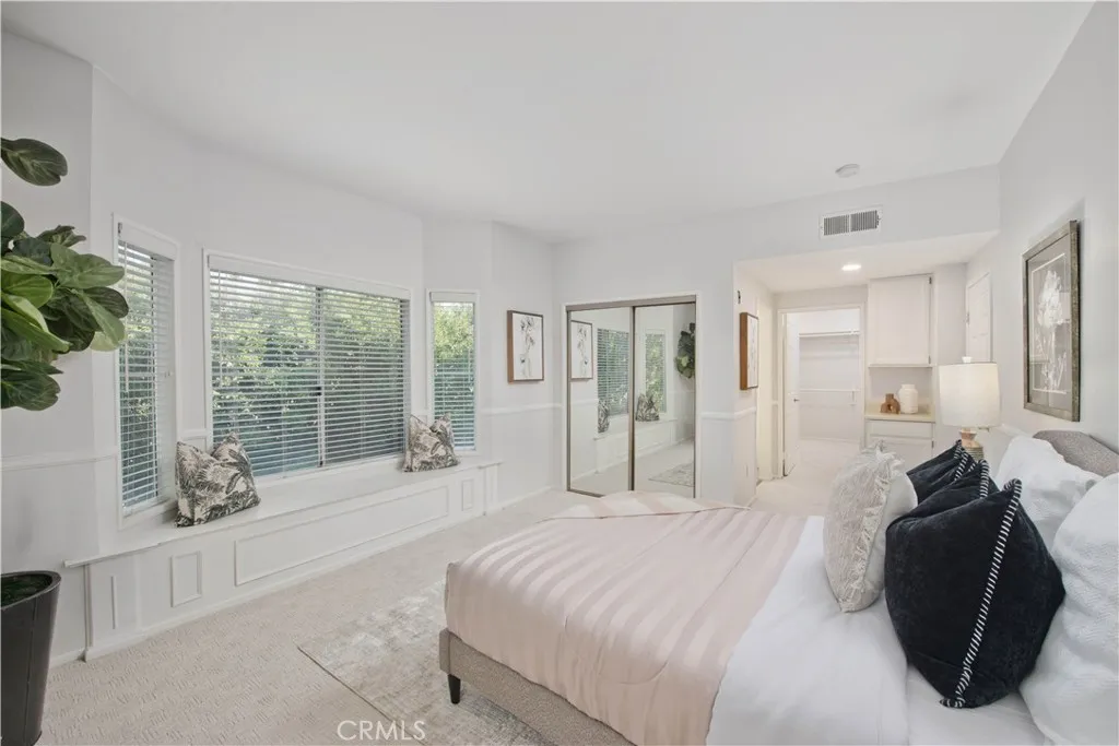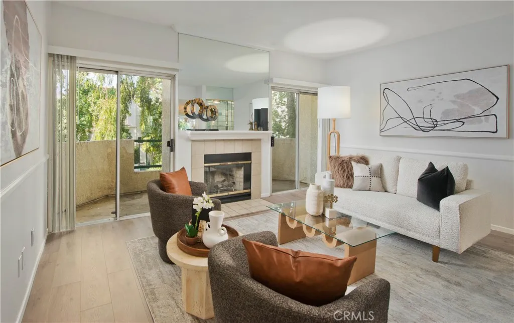 Look no further! This stunning residence in Chandler Park Village is ideally situated on a peaceful cul-de-sac street within the communitys most sought-after building. Bathed in natural light, this desirable corner unit offers beautiful views of mature trees and lush landscaping. Step inside to find spacious, open-concept living areas that include a formal dining space and an expansive living room anchored around its cozy fireplace, with direct access to a serene private balcony. The cook's kitchen features stainless steel appliances and a casual dining area perfect for everyday living and entertaining. The well-designed layout includes two bedrooms located on opposite sides of the home, providing privacy and comfort. The expansive primary suite boasts a picturesque bay window, dressing area, enormous walk-in closet plus an additional wardrobe closet, and a spa-inspired bath with a makeup vanity and an oval soaking tub. Additional highlights include a full-size in-unit laundry including W&D, recently updated vinyl flooring, new carpet, new paint, designer updates, gated tandem parking, and private storage space. Enjoy the resort-style community amenities such as multiple pools and spas, a BBQ area, and fitness center. Located just moments from premier dining, shopping, entertainment, and major freeways this is a rare opportunity to call Chandler Park Village home!