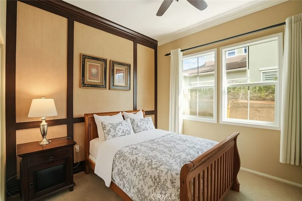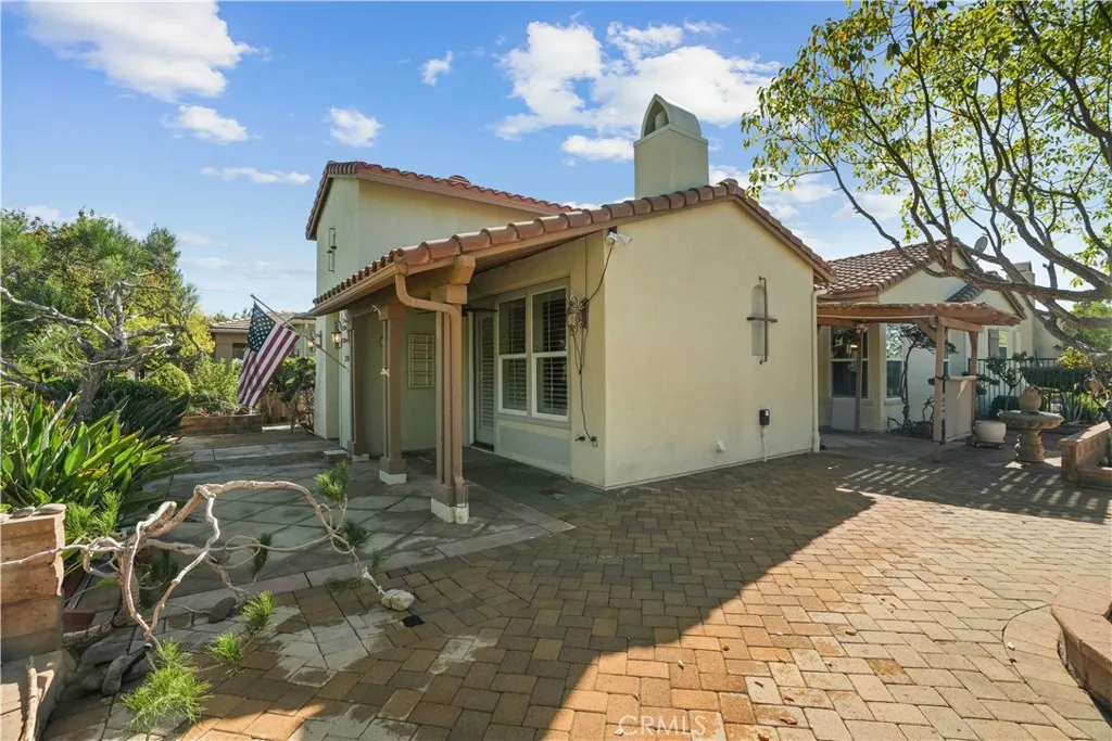 Location, Location, Location! Formerly the model home, this highly sought-after detached single-story residence is one of the most desirable floor plans in Belcaro, Valencias premier 55+ guard-gated community known for its lush landscaping, resort-style amenities, and vibrant lifestyle. Perfectly positioned on a premium view lot with no rear neighbors and just steps from the clubhouse, this beautifully maintained home offers both serenity and convenience. Step inside to find a move-in ready 2-bedroom, 2-bath home plus a spacious office or den ideal for a home office, hobby, or crafting space. The den features custom built-ins and elegant leaded glass details, adding both function and charm. The open-concept living area features 24x24 tile flooring, custom wood shutters, and a cozy gas fireplace, flowing into the upgraded kitchen complete with a gas cooktop, built-in refrigerator, center island with breakfast bar, and abundant cabinetry for storage. The primary suite is a peaceful retreat with a generous walk-in closet and a spa-like ensuite bath that includes a jetted soaking tub, separate walk-in shower, dual-sink vanity, and a stunning custom leaded glass window. The secondary bedroom is equally spacious and perfect for visiting guests. Enjoy true indoor-outdoor living with two private patio areas ideal for alfresco dining, morning coffee, or relaxing while overlooking the picturesque greenbelt and rolling hills. Additional highlights include a well-appointed indoor laundry room (washer and dryer included) and a direct-access two-car garage with epoxy flooring and extra s
