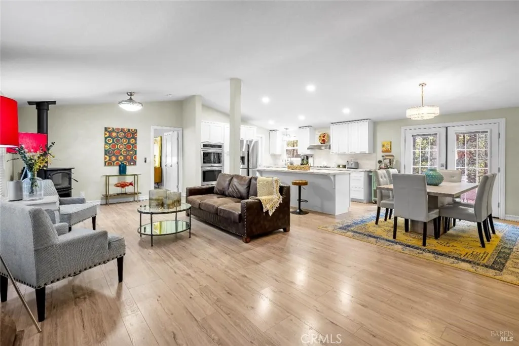 This beautifully remodeled home with studio apartment shows true pride of ownership offering modern upgrades throughout. Features include owned solar, fresh paint, and durable luxury vinyl flooring. Both the 1,662 ft. main home and the 832 ft. studio apartment are equipped with tankless water heaters for efficiency and comfort. The kitchen includes quartz counters and a double oven, while a wood stove creates a warm and cozy atmosphere on cold winter nights. New French doors open to a deck designed for entertaining and enjoying the outdoors. The studio apartment is complete with mini-split heating and cooling, making it perfect for guests, rental income, or a private home office. An additional parcel is also included, offering extra space and future potential. This move-in ready property blends energy efficiency, comfort, and versatility, making it a wonderful place to call home.