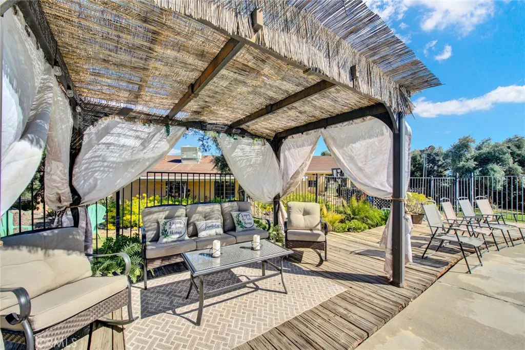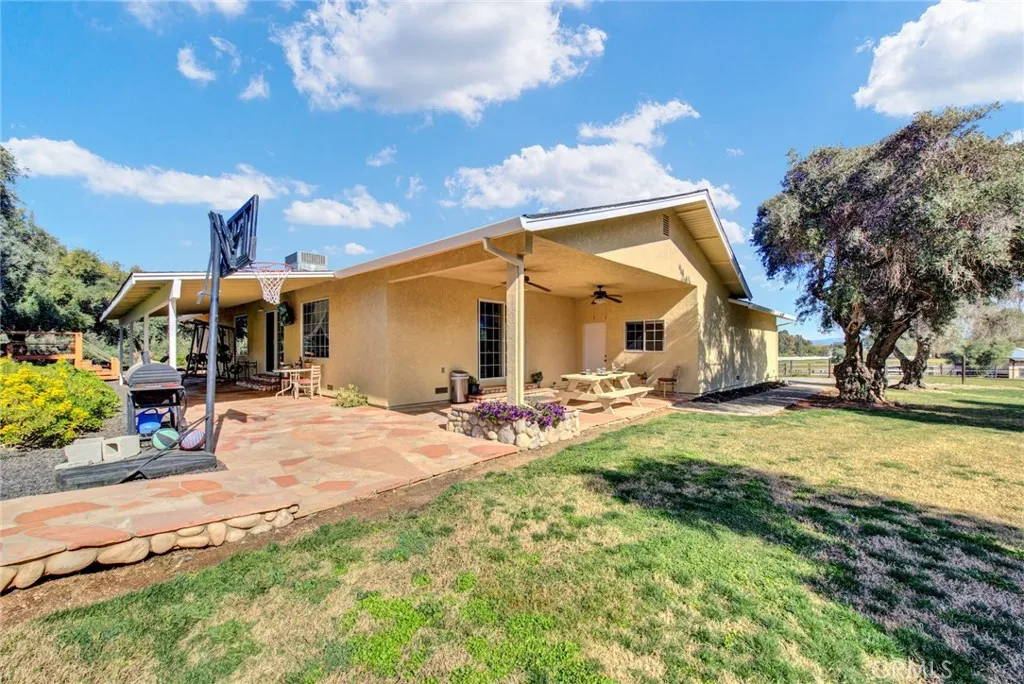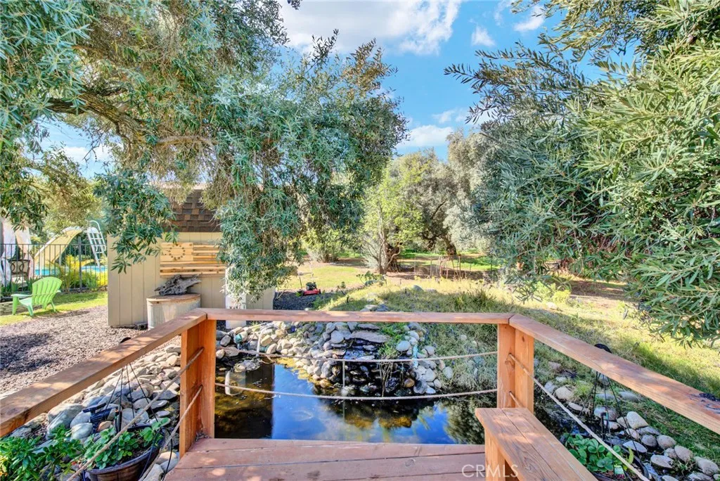 Welcome to 23671 Carona Avenue an entertainers dream nestled on 2.5 private acres surrounded by mature olive trees. From the moment you arrive, this property is designed to impress. A private driveway leads to your two-car garage, while guests are greeted with a circular drive featuring a striking flagpole set in stone. As you walk to the front door, youll notice one of two serene koi ponds. Step inside to a freshly updated interior, styled in warm farmhouse tones that create a welcoming atmosphere. Down the hall are two bedrooms, perfect for family or guests, while the spacious primary suite offers a private bath with dual sinks and a walk-in shower. The bright kitchen, with a window over the sink overlooking the yard, flows into a cozy living room where you can relax by the wood-burning fireplace. A large game room, complete with pool table, dart board, and built-in safes, provides endless opportunities for fun. Sliding doors open to a huge covered patio that wraps around the homeideal for outdoor gatherings. Beat the heat with ceiling fans in the shaded patio, or take the slide into the sparkling in-ground pool. The backyard is built for entertainment, offering horseshoe pits, mini-golf, a fire pit, batting cage net, archery range, and more. Beyond the entertaining spaces, the land itself is thoughtfully laid out for long-term enjoyment. Multiple fruit treesincluding apple, plum, pomegranate, peach, cherry, orange, lemon, and limeoffer seasonal harvests and add to the charm of the property. This is more than just a houseits a lifestyle. Rarely do properties like this co