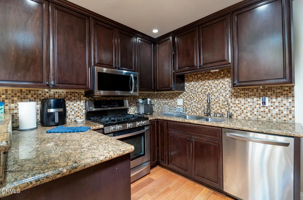 Welcome to 842 Pepper Tree Lane, a rare four-bedroom townhome-style condo offering the perfect combination of space, comfort, and convenience. The thoughtful floor plan features a bright and spacious living room and formal dining area, highlighted by two large sliding glass doors that fill the space with natural light and open to a generous, relaxing back patio. A main level bedroom offers versatility, perfect for guests or a comfortable home office. Upstairs, you'll find the spacious primary suite, two additional bedrooms, and a versatile bonus room, perfect for a study, office, or even a dream walk-in closet. Located in the beautifully maintained and sought after Sierra Palms community, one of Azusa's most convenient locations, just a few minutes from Azusa Pacific University, Citrus College, and the Metro Gold Line Station for easy commuting to Pasadena and Downtown Los Angeles. The home has been tastefully upgraded with a remodeled kitchen featuring granite countertops, a stylish tile backsplash, and stainless-steel appliances. Elegant wood and vinyl plank flooring run throughout, complemented by crown moldings, recessed lighting, double pane windows and doors and custom closet organizers. Residents of the desirable Sierra Palms community enjoy resort style amenities, including a sparkling swimming pool, basketball court, barbecue area, and plenty of guest parking.