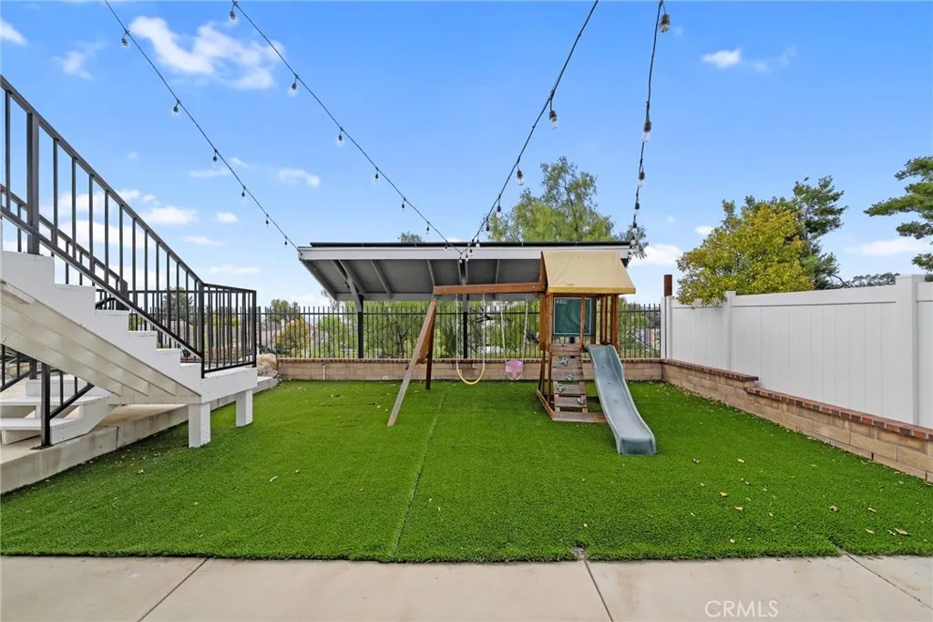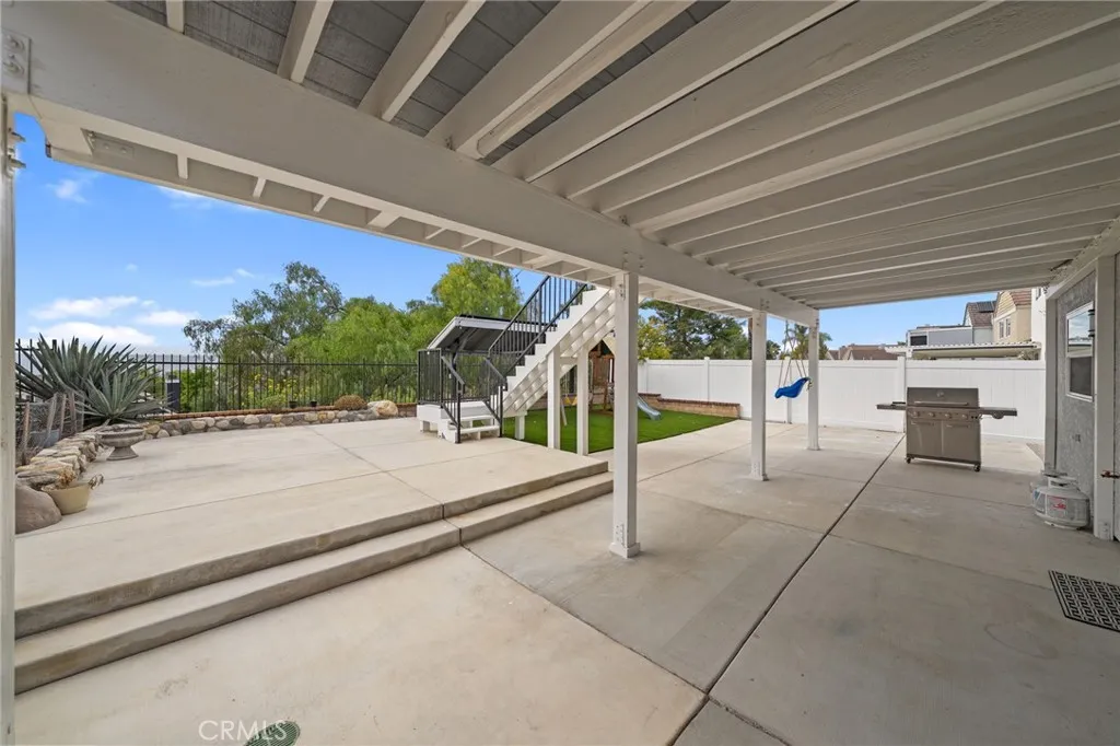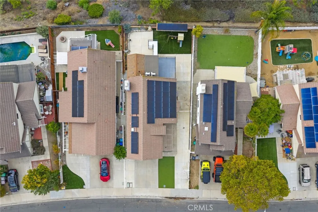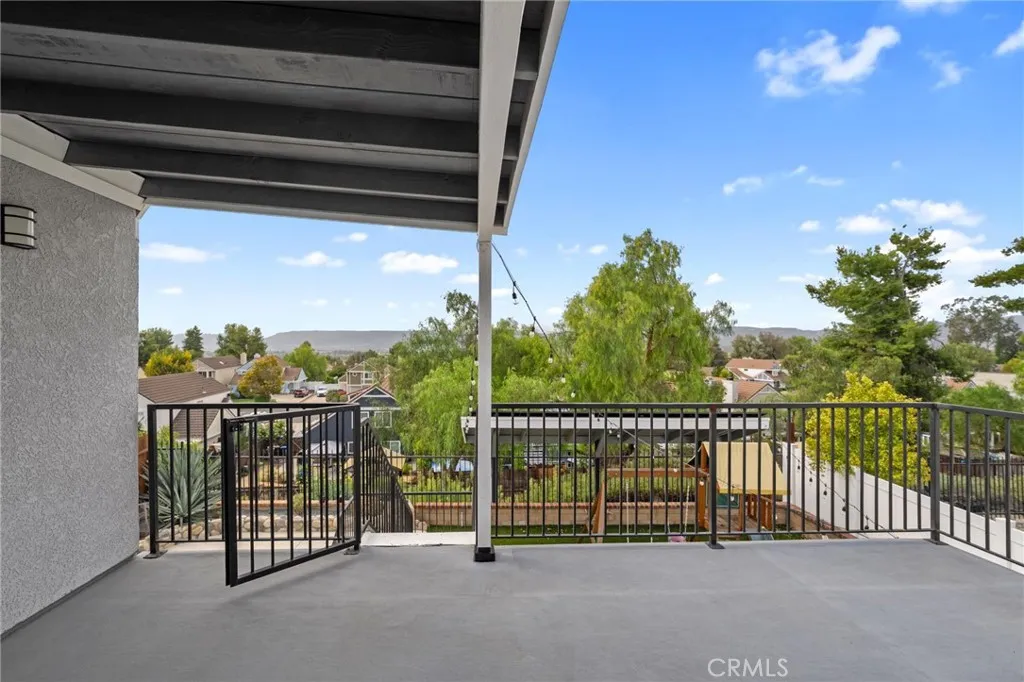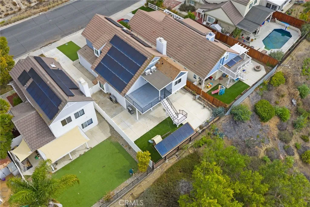 Completely turnkey and move-in ready home with FULLY PAID SOLAR and RV PARKING. This meticulously maintained 4-bedroom, 3-bath home offers 1646 square feet of comfortable living space. The home has been remodeled extensively with an upgraded AC unit, water softener, tankless water heater, upgraded electrical panel, stainless steel appliances and new flooring and paint throughout. The downstairs area boasts an open floorplan with a fully renovated kitchen with dual sinks for extra prep space, tile flooring and an expansive backyard for entertainment. Unobstructed views from the backyard with no neighbors behind or in front of home. Oversized deck with outside entry access to upstairs. All bedrooms are located on the upper level. The spacious primary suite includes a walk-in closet with an en-suite bathroom with dual vanities. In addition to the primary bedroom, the home also features a generational living suite with small kitchenette/ wet bar upstairs with its own entrance. Two additional good-sized bedrooms, one with hidden storage nook. Recessed lighting and laminate flooring throughout the upstairs. Low maintenance front and back yard with artificial grass. A rare, oversized lot with RV Parking and a two-car attached garage with epoxy flooring and workshop. No HOA and a low tax rate. Located in the highly rated Murrieta Valley Unified School District and just minutes to local dining, shopping, and outdoor recreation. This one wont last long!