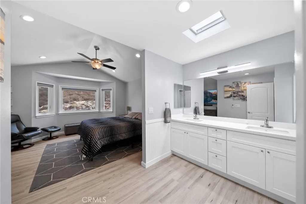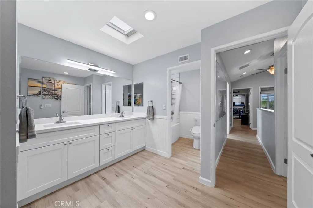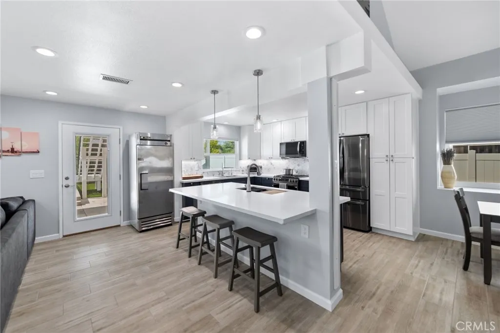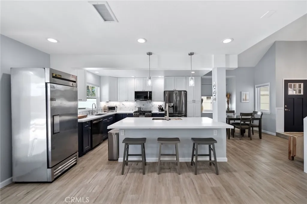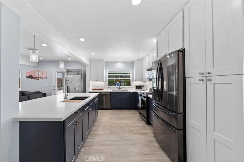 Completely turnkey and move-in ready home with FULLY PAID SOLAR and RV PARKING. This meticulously maintained 4-bedroom, 3-bath home offers 1646 square feet of comfortable living space. The home has been remodeled extensively with an upgraded AC unit, water softener, tankless water heater, upgraded electrical panel, stainless steel appliances and new flooring and paint throughout. The downstairs area boasts an open floorplan with a fully renovated kitchen with dual sinks for extra prep space, tile flooring and an expansive backyard for entertainment. Unobstructed views from the backyard with no neighbors behind or in front of home. Oversized deck with outside entry access to upstairs. All bedrooms are located on the upper level. The spacious primary suite includes a walk-in closet with an en-suite bathroom with dual vanities. In addition to the primary bedroom, the home also features a generational living suite with small kitchenette/ wet bar upstairs with its own entrance. Two additional good-sized bedrooms, one with hidden storage nook. Recessed lighting and laminate flooring throughout the upstairs. Low maintenance front and back yard with artificial grass. A rare, oversized lot with RV Parking and a two-car attached garage with epoxy flooring and workshop. No HOA and a low tax rate. Located in the highly rated Murrieta Valley Unified School District and just minutes to local dining, shopping, and outdoor recreation. This one wont last long!