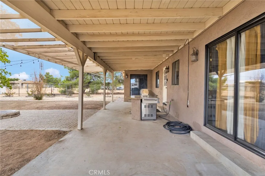 As you enter through the wrought iron gates, youll be greeted by a spacious property featuring a large concrete area on both sides of the home, including two carports for additional covered parking or storage and a circular driveway! Step inside to beautiful real wood floors, a step-down living room with a cozy gas fireplace and a bay window that fills the space with warm, natural light. The upgraded kitchen showcases all new appliances, including a five-burner stove, and stylish finishes that make it a chefs dream. Down the hall you will find two large bedrooms and the guest bathroom with a rustic, elegant touch. The primary retreat, 3rd bedroom, features his and hers closets, dual sinks, a soaking tub, and sliding glass doors leading out to the patioperfect for morning coffee or evening relaxation. Outside, enjoy a backyard designed for entertaining, featuring a large, covered patio, firepit with pavers, outdoor BBQ area with counter space, multiple storage sheds (2 with electricity), fruit trees, garden bed, chicken coop, and mature shade trees. The property is fully fenced and cross-fenced, zoned for horses. Also, solar panels that keep electric bills to nearly nothing. The three-car garage includes a bay that has been converted into additional living space/ 4th bedroom option provides flexibility for a home office, gym, or guest room, which can easily be converted back if buyer prefers to the 3 car garage. With plenty of extras and upgrades available with the right offer, this home truly has it allcome see it today!
