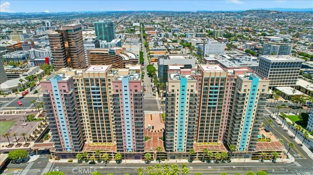 Welcome to Unit 708 at 488 Ocean Boulevard, offering expansive open-air ocean views of the Pacific. This beautifully maintained condo features 10-foot ceilings and hardwood flooring throughout the living room and both bedrooms, creating a bright and open living space. The kitchen is appointed with granite countertops, slate tile flooring, ample cabinetry, and includes all appliances. An in-unit laundry room offers a full-size washer and dryer. Both bedrooms include walk-in closets, with the primary bedroom featuring an en-suite bathroom. The home is equipped with central air conditioning and heating for year-round comfort. Enjoy ocean and city views from the living room, bedrooms, and two private balconies. The unit includes one assigned parking space in a secure, gated underground garage. HOA amenities include water, 24/7 security and concierge services, fitness center, sauna, club room, business center, and high-speed internet through Frontier. Located just steps from the beach, coastal bike paths, Metro transit, dining, shopping, and entertainment venues including Shoreline Village, The Pike Outlets, Terrace Theater, and downtown Long Beach attractions. During April, balconies offer great views of the annual Long Beach Grand Prix.