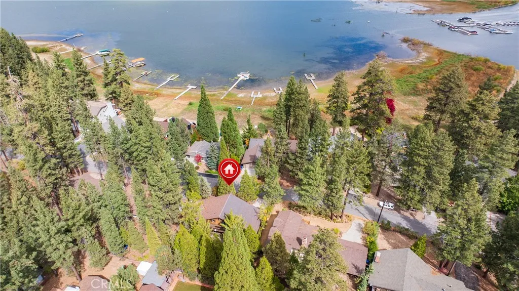 Coveted Eagle Point Location just across the street from the Lake! This 4-bedroom, 2-bath, 1,898 sq ft home sits on a beautifully treed & tranquil 8,000 sq ft lot in one of the most desirable neighborhoods in all of Big Bear. Enjoy peek-a-boo lake views and a central location close to the Village, marinas, ski resorts, dining and shopping. The main level offers a cozy family room with lake views, a kitchen with formal dining, a spacious den, a generous bedroom, and a full bath. Upstairs youll find three additional bedroomstwo with lake viewsand another bath, giving plenty of room for family and friends. You'll appreciate the sizable & comfortable rooms. The flexible layout also offers a wonderful opportunity to open up the living spaces with simple modifications, allowing you to make it truly your own. The level backyard provides a serene landscape to unwind and is ideal for BBQs, gatherings, or simply soaking up the mountain air. The oversized two-car garage includes extra storage space for all your lake & mountain toys. Fall in love with this perfect vacation getaway, full-time residence, or income-producing rental in one of Big Bears most sought-after haunts. This cabin also qualifies for dock use on Owl Drive! Dont miss the opportunity to own this Eagle Point charmer, where you can stroll to the waters edge or enjoy fireworks over the lake each 4th of July. We invite you to experience this home in person and walk this amazing neighborhood!