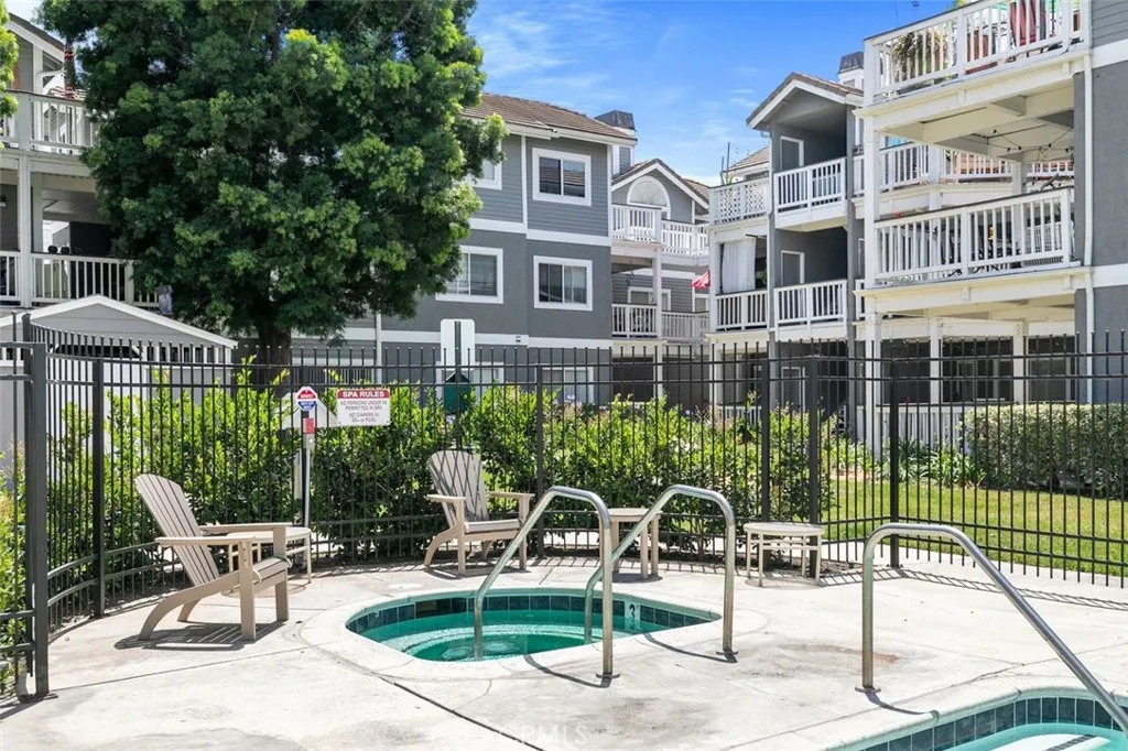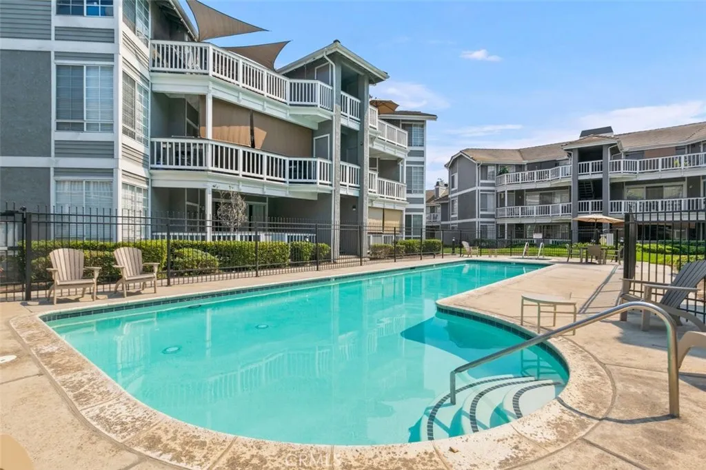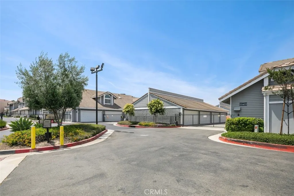 Welcome to this lovely two-bedroom, two-bathroom condominium nestled within the highly desirable gated community of Greenbrier Terraces. Step inside to discover an open and inviting floor plan filled with natural light. The spacious living room features recessed lighting, laminate flooring, and a cozy fireplace, creating the perfect ambiance for relaxation or entertaining. The kitchen is a dream for any home chef, offering ample cabinet space and stunning quartz countertops ideal for cooking and gathering. The primary suite includes a sliding glass door that opens to a large private patio perfect for enjoying your morning coffee or evening breeze. The ensuite bathroom offers an oversized tub/shower combination and mirrored wardrobe doors. The secondary bedroom is located on the opposite side of the home, providing additional privacy for guests or family members. Additional highlights include an in-unit laundry area and a generously sized detached two-car garage. Residents of Greenbrier Terraces enjoy access to a sparkling community pool and spa. Conveniently located near freeways, restaurants, and shopping. HOA-approved and move-in ready this home offers comfort, convenience, and style. Youll love living here!
