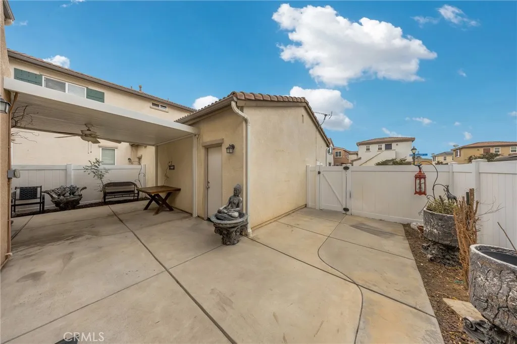 Rare opportunity to own a detached home in the sought-after Towngate community, directly facing Towngate Memorial Park. This freestanding residence offers the privacy of a single-family home with the convenience of low-maintenance condo livingno shared walls except on detached garages. With approximately 1,646 sq. ft., this 3-bedroom, 2.5-bath home features a bright, open layout with high ceilings and great natural light. The inviting living room with fireplace flows into the dining area and a comfortable family room adjacent to the kitchen, creating an easy, open connection throughout the main level. Upstairs, the primary suite is spacious with a large walk-in closet and ensuite bath. Two additional bedrooms share a full bath, perfect for family, guests, or a home office. Enjoy your private outdoor space with minimal upkeep and an attached two-car garage for added convenience. The home is ideally located just two blocks from Moreno Valley Mall, restaurants, and shopping, with quick access to local schools and freeways. Homes in this community rarely come available, especially with a park-facing location. This one is move-in ready and priced to sell.
