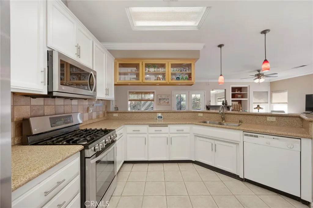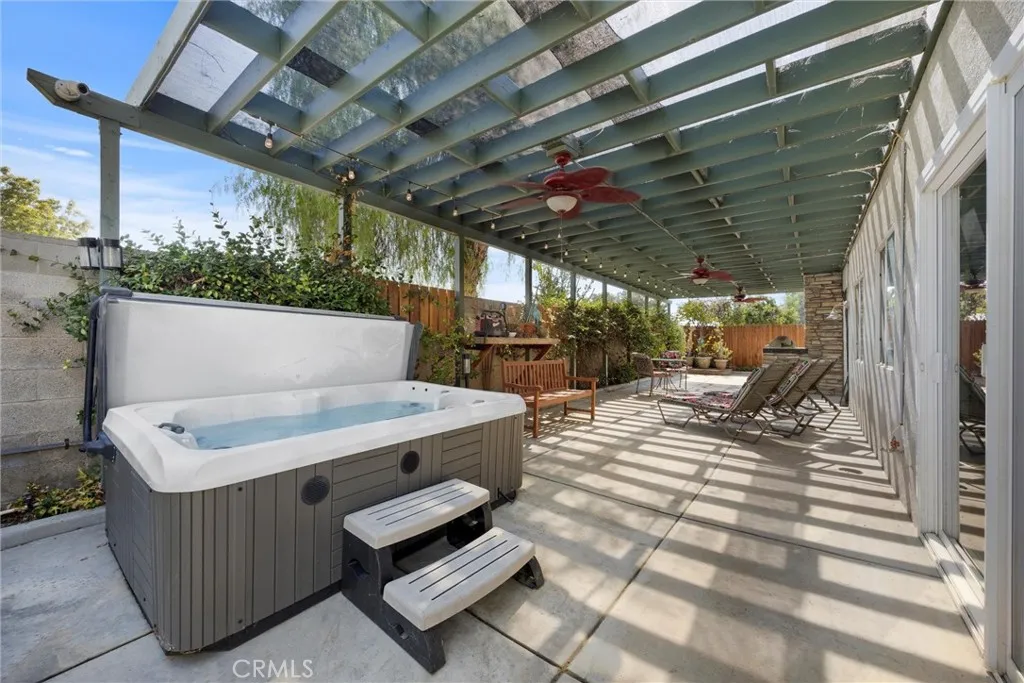 Riverlakes 4B/2B home with 2172 sqft on a cul-de-sac lot. You'll start enjoying this home before you even step inside with its charming front porch and Monji designed front yard setting the tone for what's to come. Out back, a backyard escape awaits featuring an above ground spa, pergola with sun screens & misters, an outdoor kitchen complete with refrigerator topping it off with nearly all block walls for added privacy. This home comes with PAID solar, a valuable perk that means immediate savings on energy bills from day one and fantastic benefit for a new homeowner. Enjoy the flexibility of two living areas, perfect for relaxing or entertaining, paired with a kitchen featuring sleek granite counters. Enjoy the beauty and easy maintenance of laminate wood-look flooring throughout the home. Outside, take advantage of RV parking complete with hookups and a custom iron gate for added convenience and security. All of this while enjoying all of the perks of Riverlakes community!
