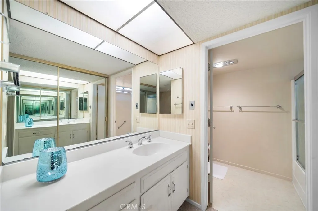 This 2 bedroom and 2 bathroom spacious condominium is located on a hill in the prestigious age 55 and over community of Laguna Woods. As you pass through the double gated entry, you are greeted to spacious living and dining rooms. The kitchen has a window to let in fresh air and light. The enclosed balcony is a great place to relax, unwind and take in the gorgeous landscape and trees. This popular floor plan has each bedroom on opposite sides of the living spaces for added privacy. The primary bedroom has a wall of closets and a ceiling fan. The En Suite bathroom features a vanity with a seperate shower/tub/toilet room. The second bedroom is a good size and makes a perfect guest room, office or hobby room. The guest bathroom in the hall has a stall shower. This building has subterranean parking with easy elevator access right to your floor. You can also access the home via the lobby with no stairs or step and no need to take the elevator. There is even more storage in the parking space. The buidling features a game/activity room. Laguna Woods is one of the most prestigious age 55+ communities in Orange County. In Laguna Woods you have access to: bus system around the community & to area shopping, restaurants, medical facilities; 5 pools & 4 hot tubs; golf, tennis, library, 7 clubhouse, 200+ clubs, 3 fitness centers, theater, horse back riding/stables, garden centers, basketball, card rooms, billiards, bocce ball, Emeritus classes & more!