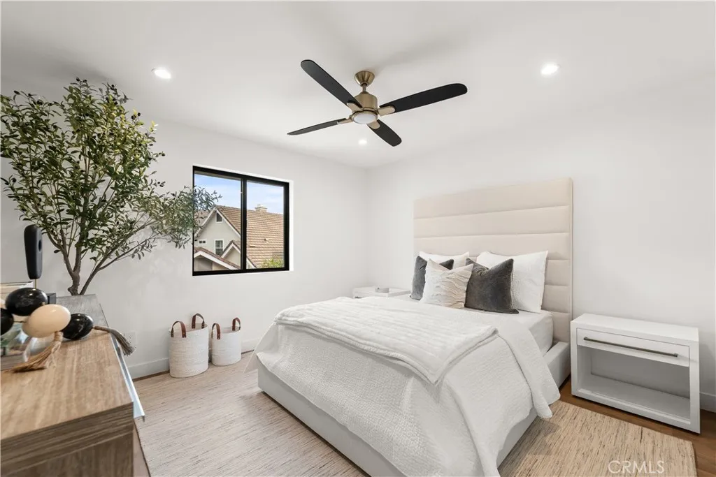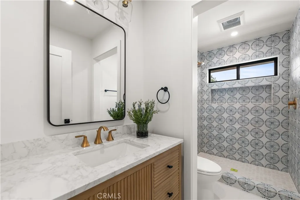 Welcome to your dream home in the heart of South Coast Metro! This stunning, fully remodeled residence in the highly sought-after Award Estates neighborhood offers 6 spacious bedrooms, 3.5 bathrooms, and approximately 2,844 square feet of luxurious living space. Designed for both comfort and style, this move-in-ready home has been upgraded with hundreds of thousands of dollars in premium improvements. Step into a beautifully updated interior featuring central air conditioning, gleaming LVP and tile flooring, and energy-efficient dual-pane windows. The chef-inspired kitchen is the centerpiece of the home, boasting quartz countertops, designer backsplash, shaker-style cabinetry, and professional-grade stainless steel appliances. The open-concept design flows seamlessly into a spacious family room, perfect for entertaining or relaxing with loved ones. The expansive primary suite is a true retreat, offering a walk-in closet and a spa-like bathroom with a large walk-in shower and quartz-topped dual vanities. All secondary bedrooms are generously sized, and each bathroom has been meticulously remodeled with modern finishes. A convenient powder room is located on the main level, along with formal living and dining areas ideal for hosting guests. Outside, enjoy a tranquil backyard oasis complete with a paver stone decking and drought-tolerantlandscapingperfect for year-round entertaining. The home also features a finished two-car garageand a private gated courtyard that leads to a dramatic entryway, complete with a skylight, and an elegant black iron staircase. Located in a quiet,