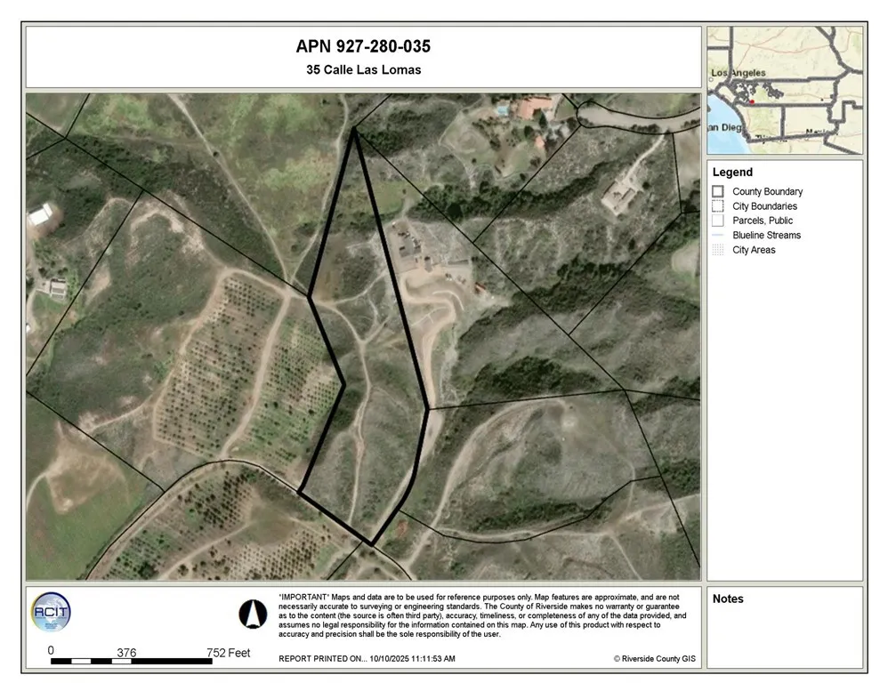 Location Location 10 Acres in the Heart of Temecula Wine Country Located just off the renowned De Portola Wine Trail, this amazing 10-acre parcel sits in the heart of Temecula Wine Country and Equestrian area, surrounded by premier wineries and rolling vineyard landscapes. one of the best 10 acres to come available in a long time, ERP completed, grading expired, Zoned RA-5 and located within the Wine Country Equestrian (WC-E) district, this offers a wide range of investment and development potential for a winery, resort, luxury estate, or income-generating cottage inn or hospitality retreat, property is a short distance to major local wineries such as Robert Renzoni, Fazeli Cellars, Somerset, Altsima, Oak Mountain, and Leoness Cellars, Water and power available at the street, Gently rolling to level terrain ideal for building, Panoramic and unobstructed views of Temecula Valley, De Portola Trail, and surrounding vineyards, Got to see this one to believe, submit all offers