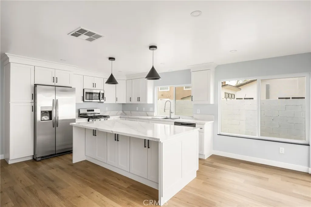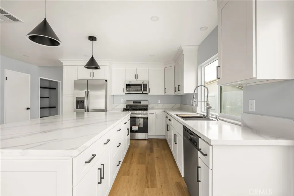 Welcome to The Colony! Nestled in a beautiful, well-established, and family-oriented neighborhood, this stunning four-bedroom, three-bath home has been completely remodeled. The bright, modern kitchen features stainless appliance, crisp white cabinetry, oversized island, breakfast bar and dinning area, beautiful countertops, and natural-toned flooring throughout. Enjoy a cozy family room with high ceilings and modern fireplace. There is a convenient downstairs primary bedroom, along with two guest bedrooms and a hallway bath. Upstairs, youll find an enormous primary suite offering elegant bathroom with privacy and comfort. Landscape front and back with fruit trees and new sod. Additional upgrades include high ceilings, laminate flooring, ceiling fans, new air conditioning, heating system, water heater, new windows, new roof, and fresh paint. Enjoy the association amenities with private clubhouse, Olympic-size pool, spacious parks, BBQ Area, Clubhouse, tennis courts and basketball courts, and tree lined jogging paths. Located on a quiet cul-de-sac, this home is centrally positioned near shopping centers, freeways, and award-winning schools. This is one property you wont want to miss!