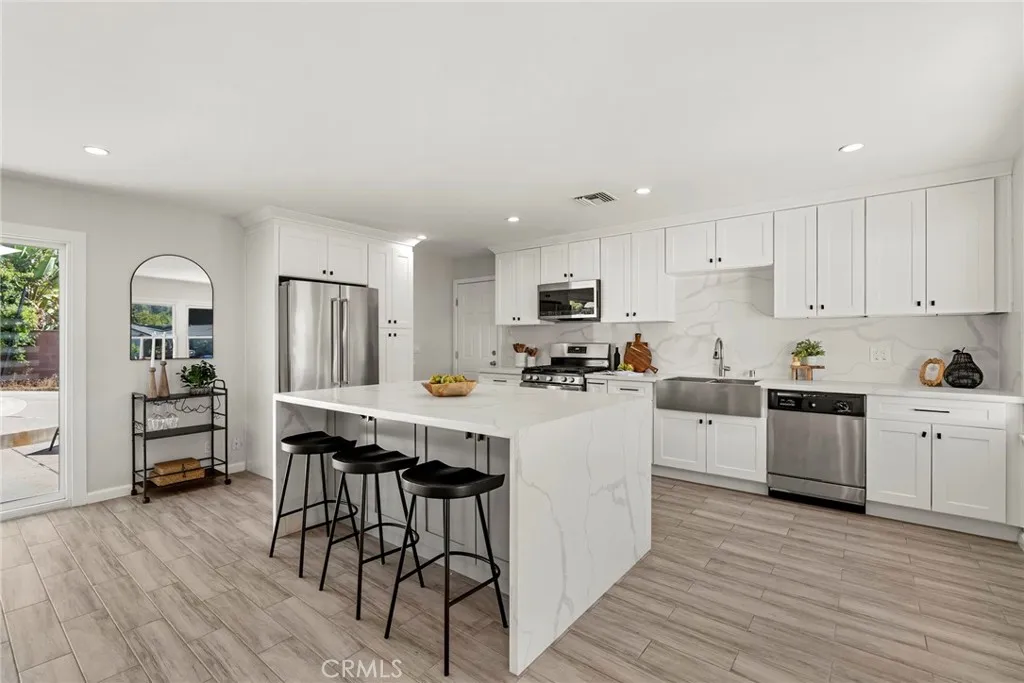 Come see this beautiful remodeled home in the desired area of West Hills! 3 beds and 2 baths, just under 1,400 sqft of living space on a nearly 8,000 sqft private lot. Perfect open layout filled with natural light. The Chef's kitchen with a center island showcases luxury living with the finest finishes and opens to the family room. The private backyard with a large grassy area is perfect for entertaining, while the sparkling large pool and lush landscape make it feel like a resort. New grass and sprinklers back and forth. Two attached car garage , epoxy floors and AC unit. Garage can be easily converted to an ADU with a separate entrance and his own backyard for additional income. Garage currently converted to a big entertainment room. Can be converted back to a garage easily if needed. Located on a quiet and beautiful street. This one won't last!