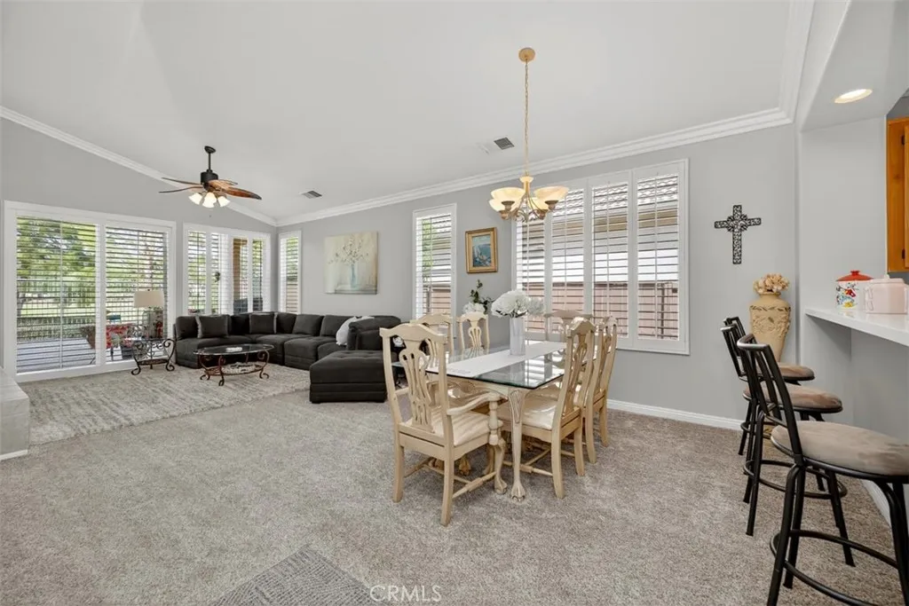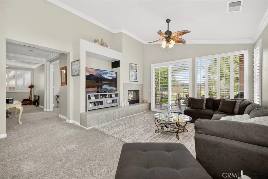 Rancho Belago **** PLEASE see Virtual Tour*** Well-regarded 55+ community! Escape the congestion and noise. Enjoy the peace of this gated Moreno Valley community with 265 thoughtfully single-family homes. Perfect for downsizing and retirement. The fully upgraded home features beautiful earth-tone interiors, many upgrades, including new carpet, an upgraded kitchen, and bathrooms. Spacious hallways and bathrooms provide easy maneuverability, accommodating mobile needs if needed. Fully landscaped front and back yards are low-maintenance with a serene golf course view. Enjoy the pleasure of walking your four-legged friend in a secure, welcoming community with peaceful surroundings. Residents enjoy a host of amenities: swimming pool, jacuzzi, clubhouse, workout room, tennis courts, and pickleball. With ongoing monthly activities, this community combines comfort, security, and an active lifestyle. A true place to call home. Thank you for showing!.