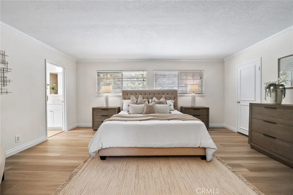 Welcome to this beautifully remodeled home where timeless architecture meets contemporary elegance. Set on a spacious half-acre corner lot, this property not only offers incredible privacy and curb appeal but also presents a fantastic opportunity for an ADU, guest house, or future expansion. Step through the custom wrought-iron double doors into a bright, airy interior featuring wide luxury vinyl plank flooring, designer finishes, and modern railings that enhance the open layout. The split-level design offers multiple living spaces filled with natural light, perfect for both everyday living and entertaining. The chef-inspired kitchen showcases white shaker cabinetry, quartz countertops, stainless-steel appliances, and an expansive island that flows seamlessly into the dining and family areas. Just off the main living area, a dedicated office with sliding glass doors opens to the patio, ideal for working from home. A guest bedroom and full bath downstairs provide comfort and flexibility for visiting family or multi-generational living. Upstairs, the primary suite is a tranquil retreat featuring a spacious layout and a luxurious ensuite bath with dual vanities and a freestanding clawfoot tub. Three additional guest bedrooms and another full bath complete the upper level. The backyard is an entertainers dream, expansive, private, and low-maintenance, with multiple zones for outdoor dining, lounging, and play. Theres also ample parking space for an RV, boat, or additional vehicles, further enhancing the propertys versatility. Located in a serene, desirable neighborhood, this ho
