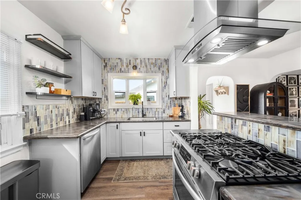 Updated cottage in the historic downtown area of Tehachapi. Full of charm and sophistication! Renovated interior and exterior! This home has a split wing floor plan with a spacious family room/dining room combination, laminate flooring throughout, newer windows and newer water heater. The kitchen has custom cabinets, farm house sink, stone counter tops, and newer stainless appliances. The primary bedroom has an electric fireplace and an adjoining bathroom with updated cabinets, stone counter and a large shower. The secondary bedrooms share an updated full bathroom. The exterior has beautiful new front fencing and was recently painted. The rear yard has a gazebo and a workshop and is fenced and cross fenced. Walking distance to downtown and an easy commute to the 58 freeway too! Don't wait too long to see this charming house that's conveniently located in the heart of downtown Tehachapi!