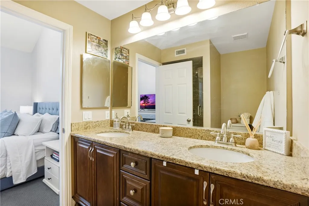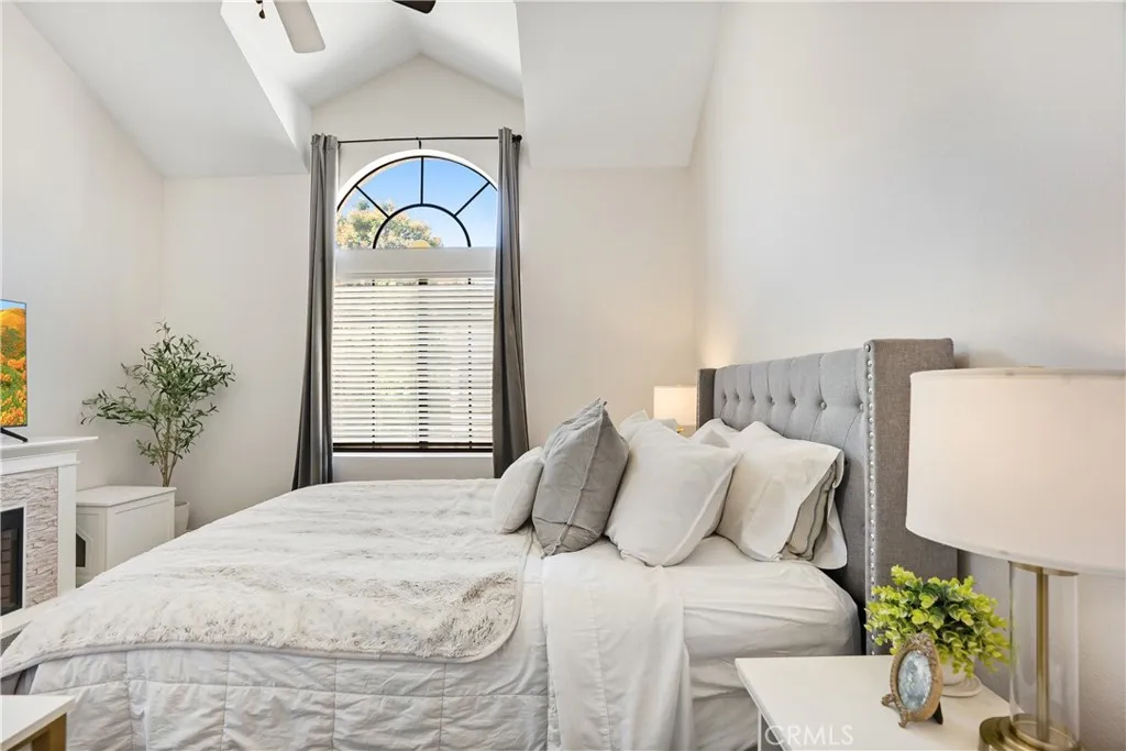 Welcome to 18108 Erik Court Unit 586 A Stunning, Fully Upgraded Top-Floor Condominium! This beautifully renovated, move-in ready condo offers nearly 1,200 sq. ft. of light-filled, open-concept living space in a peaceful, well-maintained community. Nestled among tranquil walkways and lush landscaping, this home is a true retreat. Step into the spacious living room featuring a gorgeous brick fireplace, perfect for cozy evenings. The adjoining balcony is ideal for BBQs and relaxing outdoors, extending your living space into the serene surroundings. The chefs kitchen is a showstopper, boasting natural stone quartzite countertops, brick backsplash, stainless steel appliances, and lots of cabinet and counter space a dream for any home cook. The primary suite is a luxurious escape with soaring ceilings, a fully upgraded walk-in tiled shower, and a dual-sink vanity with modern finishes. The second bedroom is generously sized, and the versatile loft area - which has been extended over the dining area plus a bonus room - offers endless possibilities. Use it as a third bedroom, a private office, or a cozy lounge. Additional upgrades include: New carpet in the bedrooms for added comfort Upgraded guest bathroom vanity and sink Recessed lighting and ceiling fans in the bedrooms Central air and heat Washer and dryer included Newer water heater Two-car garage with a new door and opener, plus added storage Community amenities include a sparkling pool and spa, with trash and water included in HOA dues. Conveniently located near the 14 freeway, top-rated schools, shopping, and dining. This