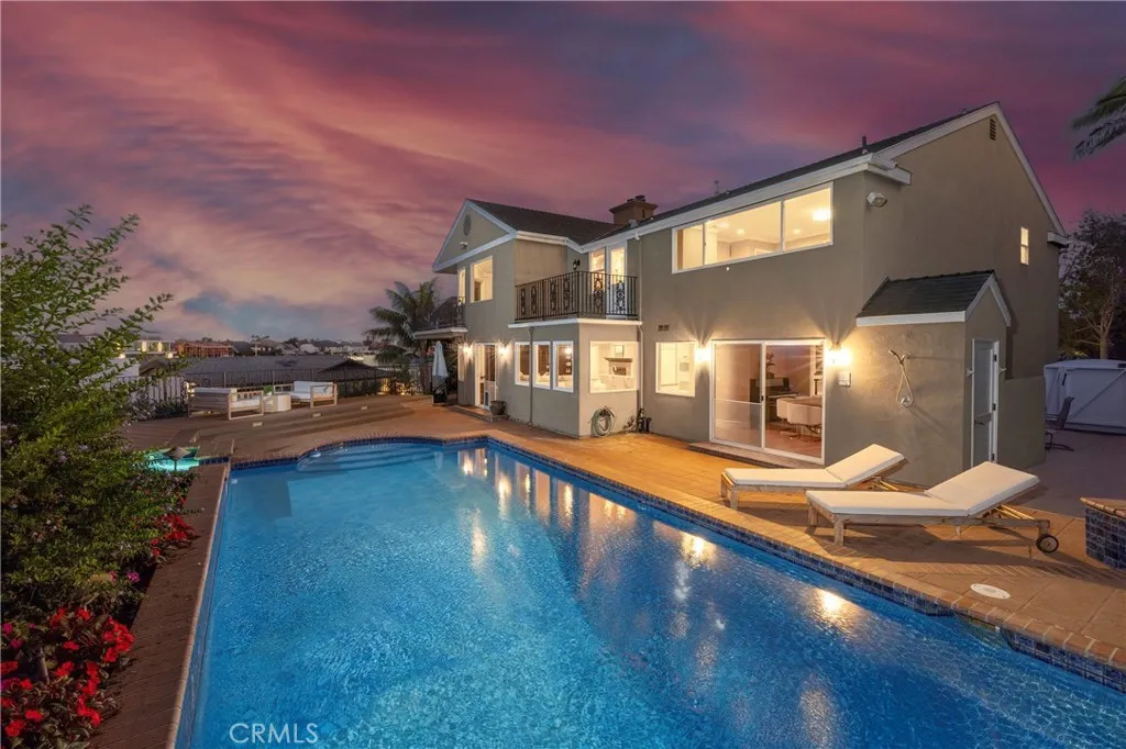 Perched high atop a serene cul-de-sac on Huntington Harbours coveted Gilbert Island, this elegant coastal retreat offers breathtaking channel views and the best of Southern California living. Spanning nearly 4,400 square feet, the residence features four spacious bedrooms, including a main-floor suite ideal for guests or multi-generational living. Throughout the home, custom built-ins, rich wood floors, crown molding, and fine finishes create an atmosphere of timeless sophistication. The gourmet kitchen overlooks a resort-style backyardperfect for entertainingwith a sparkling pool and spa, built-in BBQ/bar, and lush tropical landscaping that captures the essence of a private paradise. Upstairs, the primary suite is a true sanctuary with panoramic channel views, a cozy fireplace, spa-inspired bath, and dual walk-in closets. Two additional guest suites each offer private en-suite baths and generous closet space. Enjoy cool ocean breezes and a lifestyle that blends luxury and leisurewalk or bike to Bolsa Chica Beach and Wetlands, or enjoy nearby dining, shopping, and entertainment just minutes away. A charming park and playground sit just steps from the front door. This remarkable home combines coastal elegance, comfort, and convenience in one of Huntington Harbours most desirable enclaves.