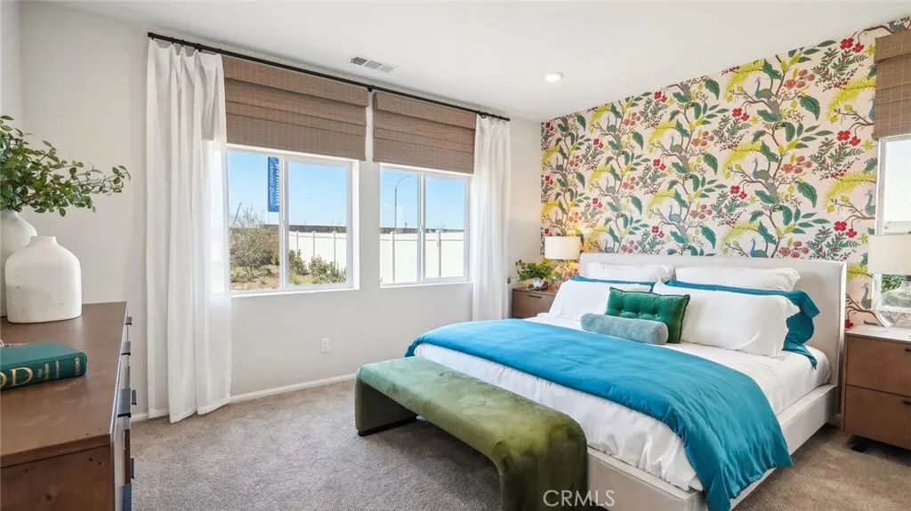 New Construction - This 1,576-square foot single-story home with [3] bedrooms and [2] full bathrooms. The exterior of the home is a California Spanish faade with a large back yard. The eat in kitchen island has Bianco Tiza QUARTZ counters, built-in stainless-steel appliances and a pantry closet. The interior comes complete with Crisp White shaker-style cabinetry throughout, lots of included recessed lighting, and upgraded flooring with plush carpet in bedrooms, closets, and stairs, and vinyl in main living areas. The primary bedroom has an ensuite bathroom with double sinks and a walk-in closet, and there are 2 additional bedrooms, a full bathroom, and laundry room. There is also a direct-access 2-car garage PRE-PLUMBED for an electric car! This truly modern home has all the Smart Home features you would expect and is landscaped and irrigated in the front yard. The Juniper community is situated close to park and freeway access. We anticipate a December move-in, This Home has Solar Included in the Price of the Home !