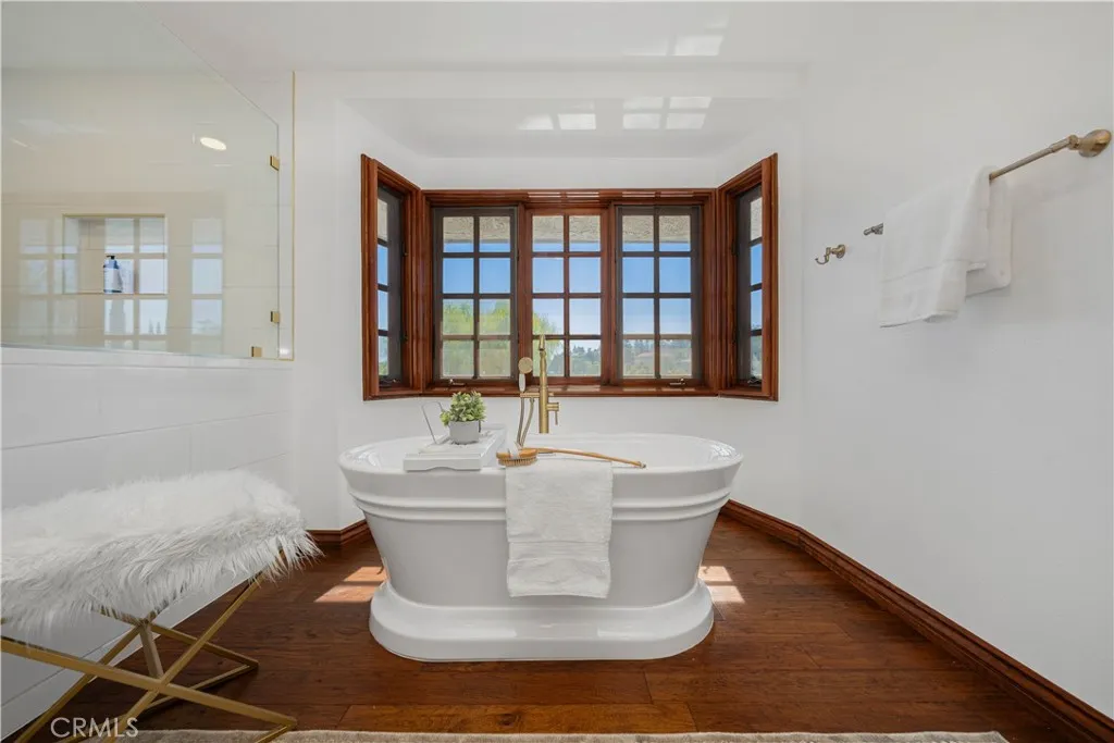 A rare opportunity to own a remarkable 4,500+ sq. ft. traditional Zuckermann VIEW home in the prestigious Valley Circle Estates. Impeccably maintained and ideally positioned at the foot of the Victory Trailhead, this residence makes a lasting impression from the moment you arrive. A grand foyer welcomes you with soaring, beamed ceilings, a sweeping oak staircase, and diamond-grid windows that exude timeless elegance. Inside, discover four recently renovated bathrooms and newly installed hardwood floors that flow seamlessly throughout. The expansive living room, anchored by a dramatic fireplace, connects to a formal dining room designed for hosting gatherings of every size. The chefs kitchen is a dream for those who love to cook and entertain, featuring dual Viking ovens, a six-burner Viking range, Sub-Zero refrigerator/freezer, an expansive island, and abundant cabinetry, combining practicality with enduring style. The lower level enhances the homes livability with a spacious family room and built-in bar, a private in-law suite with full bath, a dedicated laundry room with sink, and an additional powder room for guests. Upstairs, the luxurious primary suite offers panoramic valley views, a private balcony, cozy fireplace, and a sun-drenched spa bath with freestanding tub, dual vanities, and a cedar-lined walk-in closet. Two additional bedrooms and a well-appointed bathroom complete the upper level. Step outside to your private paradise. A perfect balance of hardscape and lush lawn, a sparkling pool, built-in BBQ, and sweeping 180 views, ideal for entertaining or unwinding i