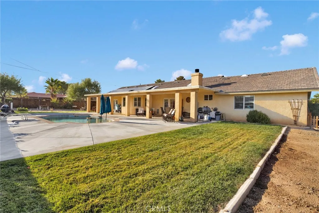 Welcome to your dream SINGLE STORY- POOL and SPA home! Energy efficient and cost effective with OWNED SOLAR! Perfectly situated on a spacious corner lot in a quiet, well-established neighborhood, this beautifully maintained 4-bedroom, 2-bath single-level residence offers the ideal combination of comfort, functionality, and style. As you step inside, youre welcomed by two generous living areas filled with natural lightproviding the perfect spaces for both relaxed family living and effortless entertaining. The open-concept kitchen seamlessly connects to the main living space and dedicated dining room, making everyday meals and special gatherings a joy.The primary suite is a serene retreat, complete with an en-suite bathroom and plenty of closet space. Three additional bedrooms offer flexibility for guest rooms, home offices, or growing families. Step outside and experience your own backyard paradise. A sparkling pool and spa invite you to unwind or entertain under the sun or stars, while the expansive yard provides plenty of room for play, gardening, or even future possibilities. Room for RV and TOYS! This home also features an attached 3 car garage, ample circular drive parking, and the rare convenience of a single-level layoutall on a large lot that offers both privacy and potential.