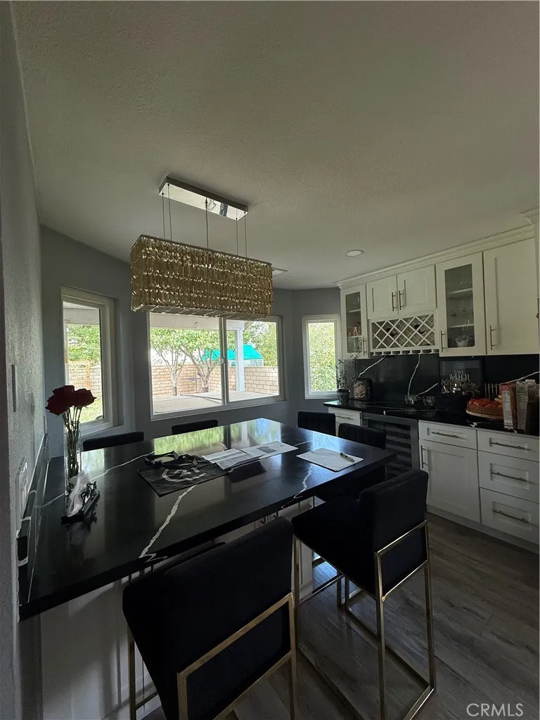 Step into a world of modern elegance with this beautifully appointed 3-bedroom, 2-bath residence located in the highly desirable Spring Valley Lake community. The home makes a grand first impression with a wrought iron entry door and a soaring main entry ceiling. Inside, you'll find beautiful laminate flooring flowing throughout the main living areas. The living room is bathed in natural light, thanks to two expansive windows, and features recessed lighting and a cozy fireplace, creating an inviting atmosphere perfect for relaxation or entertaining. The heart of the home is the stunning kitchen, featuring crisp white cabinetry accentuated by polished brass handles, and striking black granite-style countertops surrounding a generous granite island with a breakfast nook/dining area. Large windows ensure the kitchen also enjoys abundant natural light. Outside, the property is designed for enjoyment, offering a patio ideal for outdoor barbecuing and a grass backyard perfect for entertainment. Residents of this community enjoy a low Homeowners Association (HOA) fee and access to fantastic amenities, including a golf course, a private lake, and much more. This exceptional home offers both style and a coveted lifestyle.