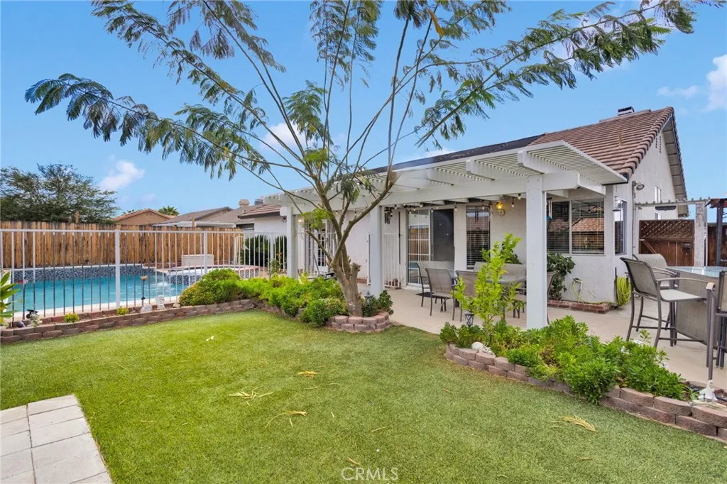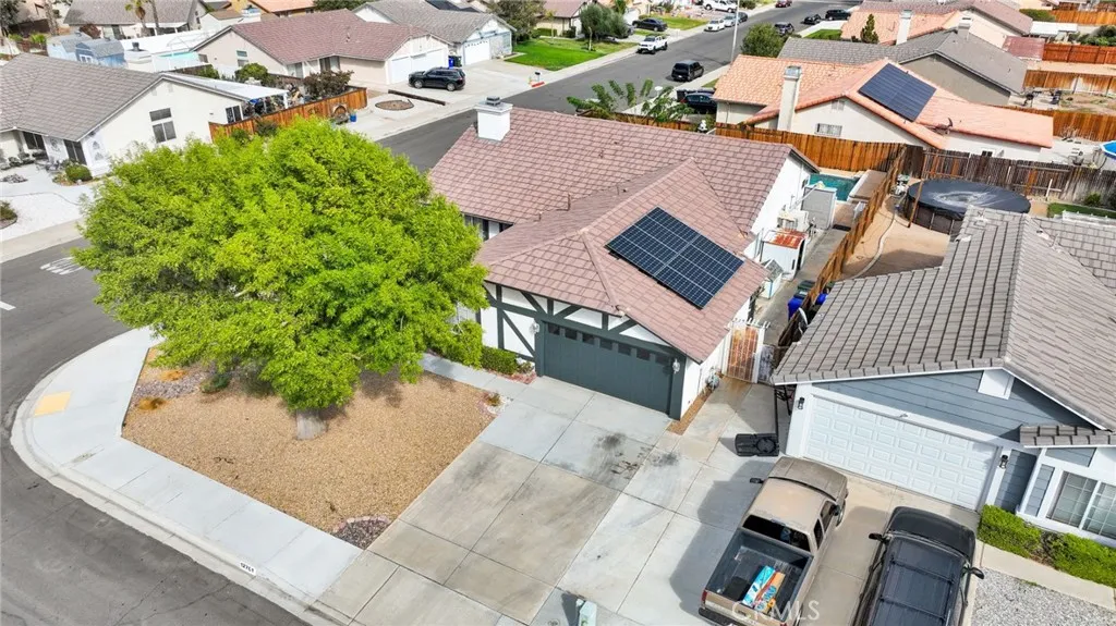 Welcome to this spacious 6-bedroom, 2-bath pool home in Victorville, perfectly situated on a corner lot. Step inside to an open floor plan featuring a cozy dual-sided fireplace that adds warmth and charm to both the living and dining areas. The kitchen flows effortlessly into the living space, making it great for family gatherings and entertaining. The large primary bedroom offers direct access to the backyard. Your own private retreat with a sparkling pool, spa, and beautifully landscaped surroundings. Enjoy the convenience of indoor laundry and peace of mind with a newer HVAC system installed in 2023 and a newer water heater. Plus, the solar will be paid off at closing. With its thoughtful layout, modern upgrades, and inviting outdoor space, this home is ready for you to move in and make it your own.