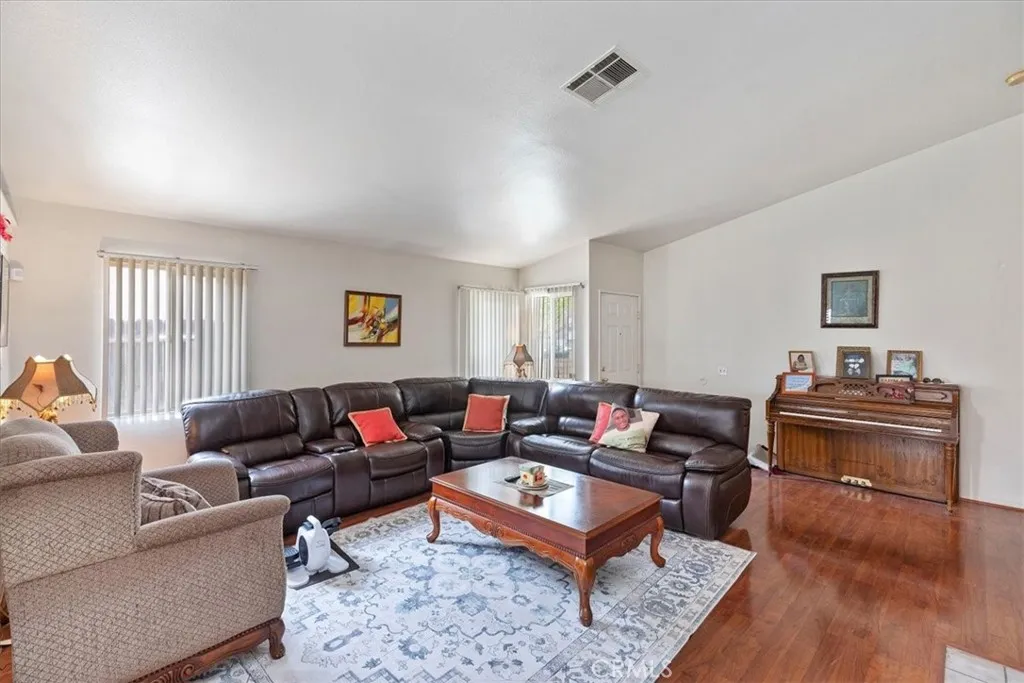 Wonderful newer home centrally located. This home is in great condition situated on a quiet cul de sac. Very open floorplan with vaulted ceilings and hardwood floors throughout. The living room has high ceilings and a lovely fireplace with stone trim. The kitchen has an island counter along with nice cabinets and granite counters. The stove is stainless steel. The back yard is extremely well manicured with a newer patio cover. The functional part of the home boasts 4 bedrooms with two full bathes. A true VAUE property. Tile roof also.