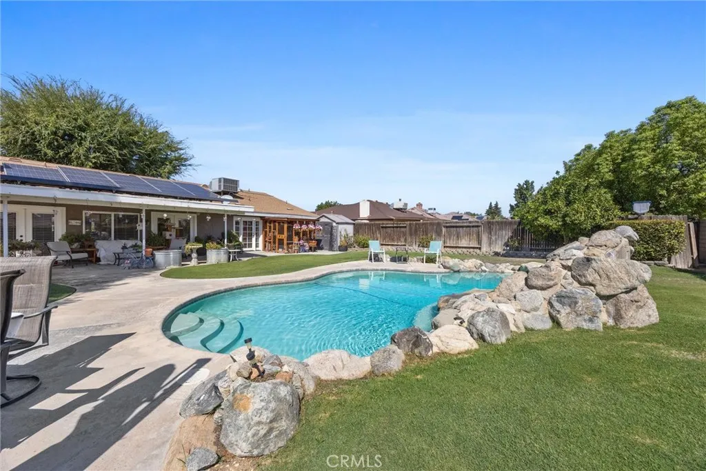 This NW home offers the perfect blend of comfort, space, and backyard retreat. With 4 bedrooms, 2.5 baths, and 2,321 sqft, the home features a spacious flowing layout highlighted by a striking brick fireplace with a raised hearth and wooden mantle perfect for cozy evenings or adding character to your living space. Just off the living room, a built-in office nook adds a convenient and dedicated space for working from home, managing schedules, or tackling homework tucked neatly away but still connected to the heart of the home. The kitchen is both thoughtfully designed and practical, offering granite countertops, double ovens, and an extended island that provides generous prep space for cooking, baking, or casual dining. Step outside to your own private retreat featuring a glistening pool and a peaceful rock waterfall its gentle cascade creating a calming ambiance ideal for unwinding or entertaining. The oversized primary suite and well-designed layout make this home a true standout.