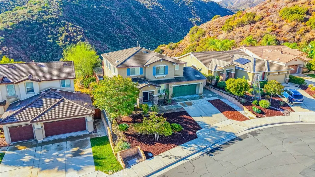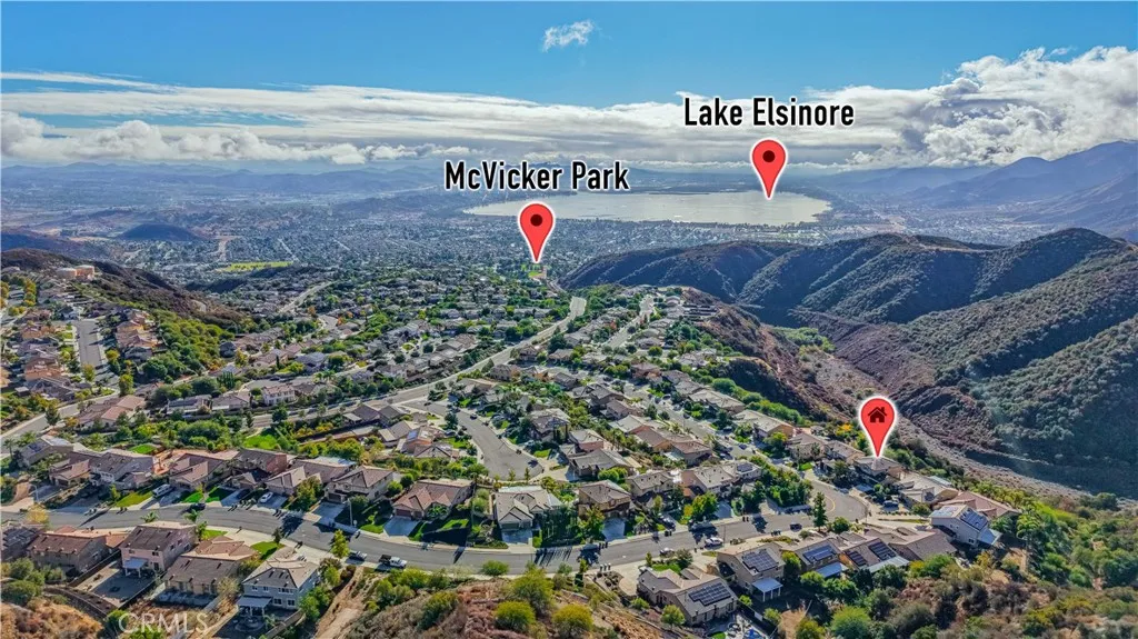 LAKE, MOUNTAIN, AND SUNRISE VIEWS! Discover elevated living in the highly coveted Cambria Hills community of Lake Elsinore. This elegant 4-bedroom, 3-bath home is thoughtfully designed for todays multi-generational lifestyle, featuring a convenient first-floor bedroom plus a versatile downstairs flex room that can serve as a fifth bedroom, private office, or guest space. Set against a breathtaking backdrop of unobstructed lake and mountain views, the home offers rare privacy with no neighbors behind and a peaceful setting surrounded by nature. Inside, timeless details include tile flooring throughout the main level, plantation shutters, and custom crown molding. The gourmet kitchen features sleek black granite countertops, modern cabinetry, and a built-in deskperfect for both daily living and entertaining. Upstairs, a spacious loft leads to an upper deck through sliding glass doors, where you can relax and take in expansive views of the rolling hills and sparkling lake. With a two-car garage and truly move-in ready condition, this Cambria Hills gem blends scenic beauty with modern eleganceoffering a serene lifestyle in one of Lake Elsinores most desirable neighborhoods!!