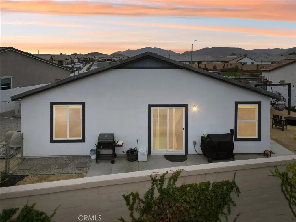 Welcome to your new home in Hemet! Built in 2024, this beautiful single-story residence offers 3 spacious bedrooms and 2 full bathrooms. As you arrive, youll be greeted by a charming bright red front door and matching shutters that add a pop of curb appeal. Step inside to discover an open floor plan filled with natural light, featuring a large living area that flows seamlessly into the modern kitchen perfect for entertaining family and friends. Each bedroom is generously sized, providing comfort and flexibility for the whole family. The backyard is ready for gatherings, complete with concrete areas, low-maintenance mulch landscaping, and a lovely gazebo ideal for relaxing or hosting outdoor get-togethers. Conveniently located near local shopping, schools, and parks, this move-in ready home combines modern style, functionality, and value. Dont miss your chance to make it yours!
