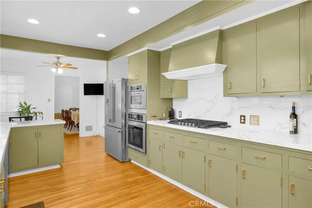 Welcome to 929 East Marshall Place, a distinguished two-story Colonial Revival nestled in the heart of Bixby Knolls. Offering five bedrooms, four bathrooms, and 3,100 square feet of updated living space, this residence seamlessly blends timeless architecture with modern comforts. The homes curb appeal is undeniable with its symmetrical faade, landscaped grounds, and brick walkway leading to an arched entry create an inviting first impression. Inside, a grand foyer welcomes you with hardwood floors, intricate moldings, and an elegant iron staircase, setting the stage for sophisticated yet livable interiors. The main level features expansive formal living and dining rooms, highlighted by a herringbone-tiled fireplace, custom lighting, and French doors that open to the lush backyard. The remodeled kitchen pairs sage cabinetry with quartz countertops, stainless steel appliances, and a charming garden window. A versatile sunroom with terracotta tile floors and direct outdoor access provides additional space for relaxation or entertaining. Two first-floor bedrooms, including one with an ensuite bath, offer flexibility for guests, an office, or multi-generational living. Upstairs, the primary suite serves as a private retreat with French doors opening to a balcony, a spacious walk-in closet, and a spa-inspired ensuite with dual vanities and a soaking tub. Two additional bedrooms and a flexible landing area, perfect as a reading nook or gallery wall round out the upper level. Throughout, original details have been carefully preserved while bathrooms and finishes have been thoughtfu