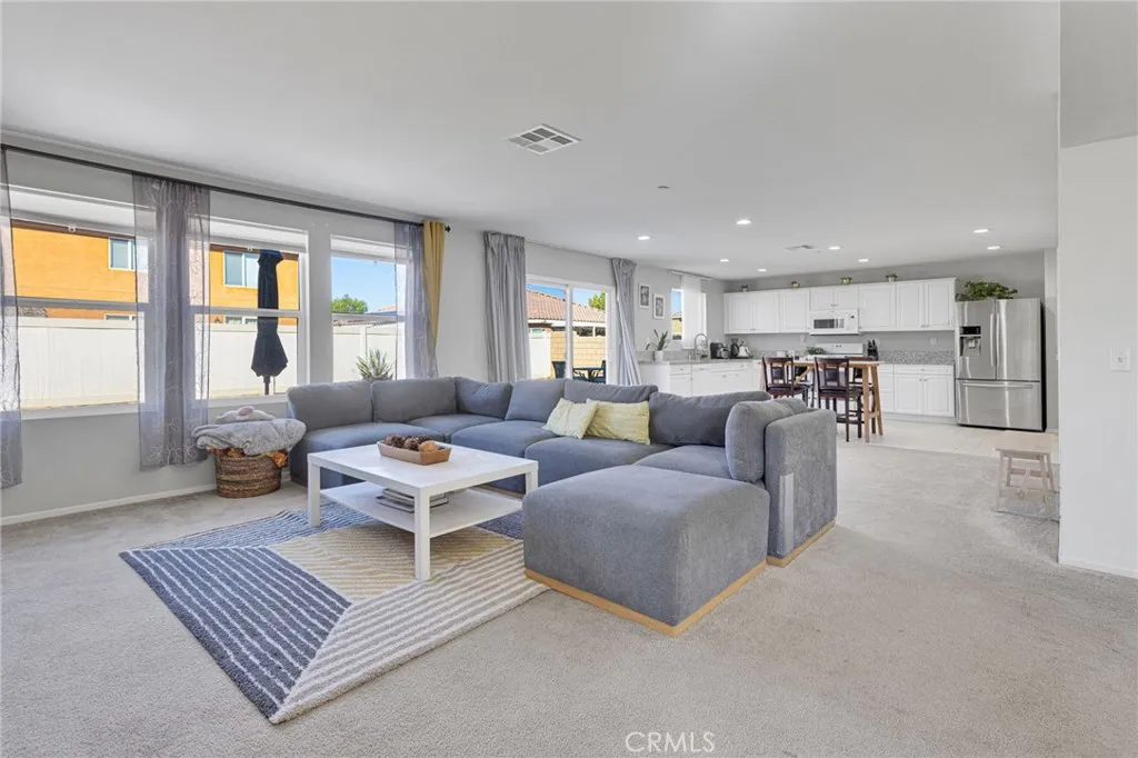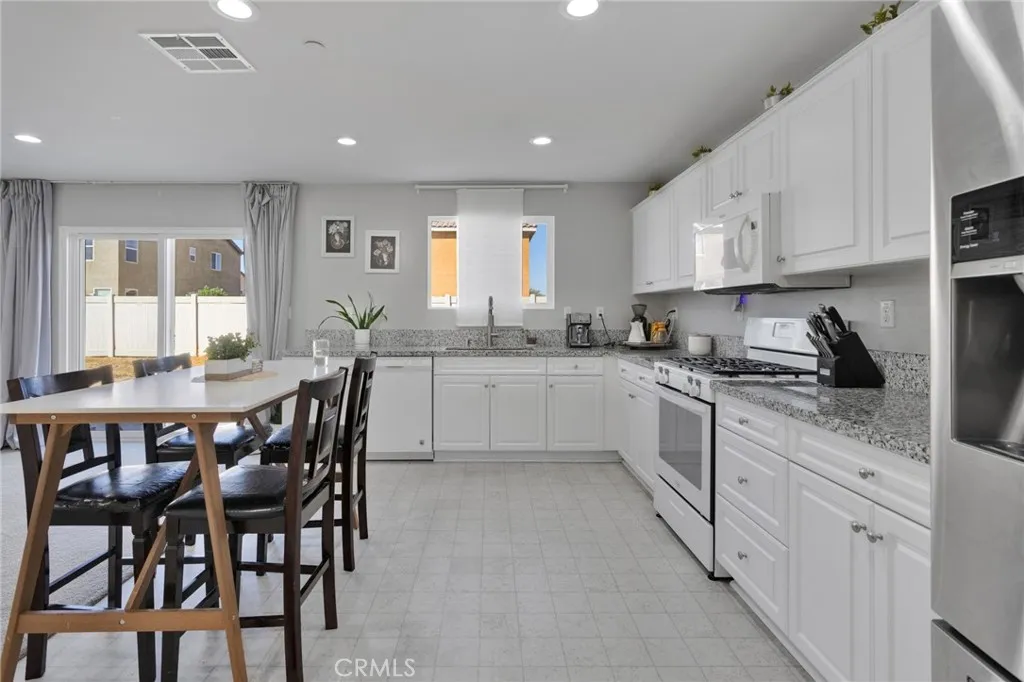 Introducing 15954 Silver Tip Way, a contemporary two-story built in 2017 with open-concept living and tasteful upgrades. This 4-bed, 2.5-bath residence (~2,902 sq ft) welcomes you with airy ceilings, recessed lighting, and a flexible layout that flows from the living room to a generous great room and chefs kitchen. Anchored by quartz countertops, a walk-in pantry, and a gas range with microwave, the kitchen opens seamlessly to the main living spaceperfect for everyday comfort and effortless entertaining. A convenient main-level bedroom and bath offer ideal guest or multigenerational flexibility, while the upstairs rooms include a spacious primary suite with walk-in closet and well-appointed secondary bedrooms. Additional highlights include ceiling fans, central air & heat, individual laundry room, and a 2-car attached garage. Outdoors, the 7,187 sq ft lot provides room to relax, with city-lights and neighborhood views as your backdrop. A polished, move-in-ready home with modern finishes and a thoughtful floor plan.