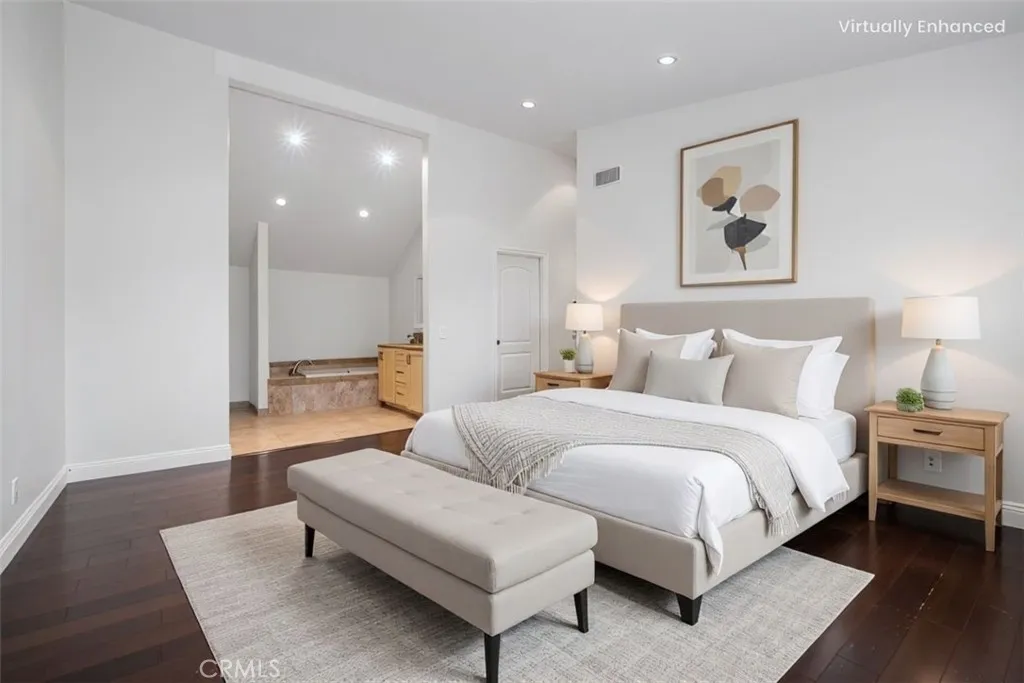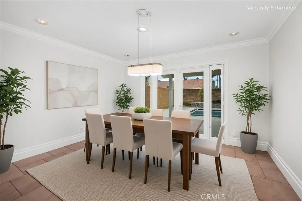 This wonderful home has everything you are looking for. Step inside and notice the beautiful detail of the espresso hardwood floors and the custom stair rail. A large kitchen with attached family room look out to the large backyard with pool and spa. The tile floors give this home a clean feel. The floorplan has 5 bedrooms and 3 bathrooms including 1 bedroom and bathroom downstairs. Vaulted ceilings in the living room bring in natural light from the custom stained glass window. The large primary bedroom has a full bathroom equipped with dual sinks and a separate bathtub and shower. Recessed lighting, crown moulding and wood shutters add a richness to this home. Formal dining room with french doors leading to the serene yard. A full 3 car garage with ample overhead added storage caps this wonderful layout. Located in a quiet, inside tract location in a great neighborhood with top schools, close to major freeways, shopping, restaurants and Mile Square Park. This home is a true gem.