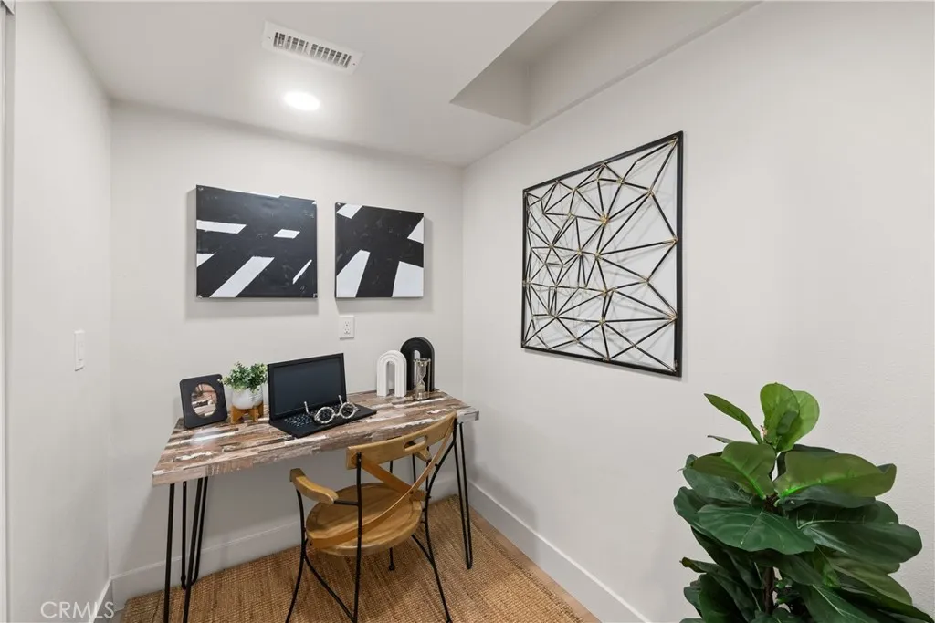 Welcome to Rancho La Paz, where modern upgrades meets desert charm! This fully renovated, turnkey 2-bedroom, 2-bath condo on Fee Simple Land (yes, you own the land!) offers dual master suites - each with 2 large closets! Step inside to a rare gem ideal for flexible modern resort-style living featuring a newly built-in private OFFICE SPACE, brand new fully updated bathrooms with showroom quality vanities, sleek designer hardware, modern finishes throughout, and an overall home that breaks the moldwhere every finish, every feature, and every detail has a story to tell! Flow effortlessly from room to room on luxury vinyl plank (LVP) flooring, handpicked for its style and comfort. The home's rich texture and modern lines create a seamless, sophisticated foundation for your personal touch. With beautifully beamed white shiplap vaulted ceilings, upgraded LED recessed lighting features, skylights offering abundant natural light, and an open floor plan, this home is destined to feel bright, spacious, and extremely inviting. The designer-finished updated kitchen features quartz countertops, an island with extra space for bar seating, brand new stainless steel appliances, a large deep single-basin sink, desirable soft-closed drawers, and custom state-of-the-art finishes, opening seamlessly to the living and dining areas. Enjoy year-round comfort with newly installed energy-efficient windows, doors, 3 glass sliders, plus remote-controlled operated ceiling fans strategically placed throughout each room. In-unit laundry access adds highly sought-after convenience that is often hard to f