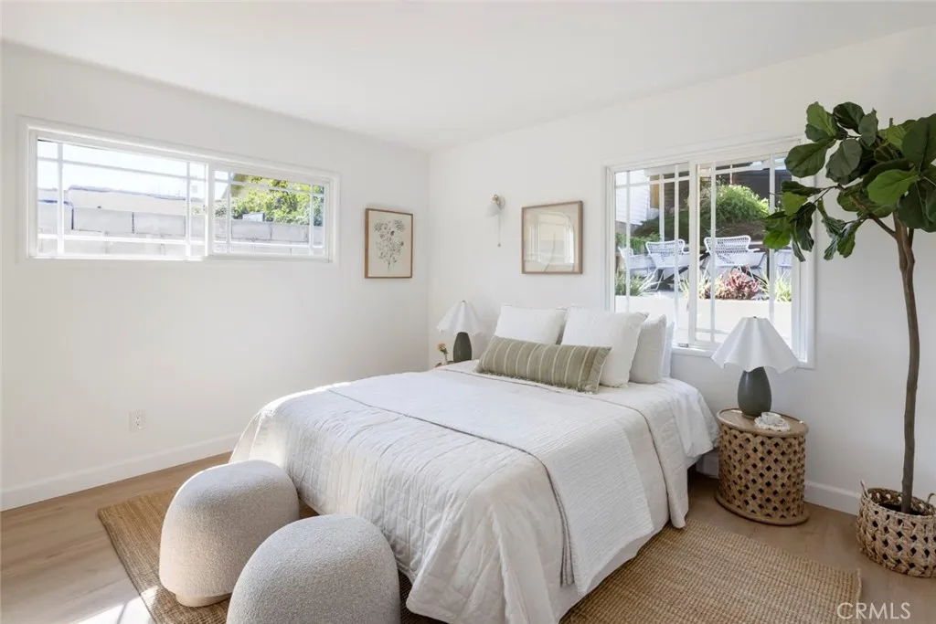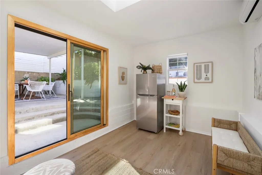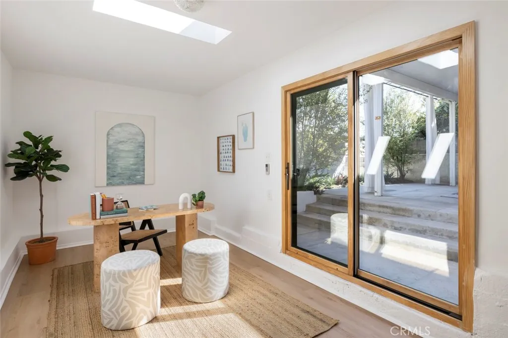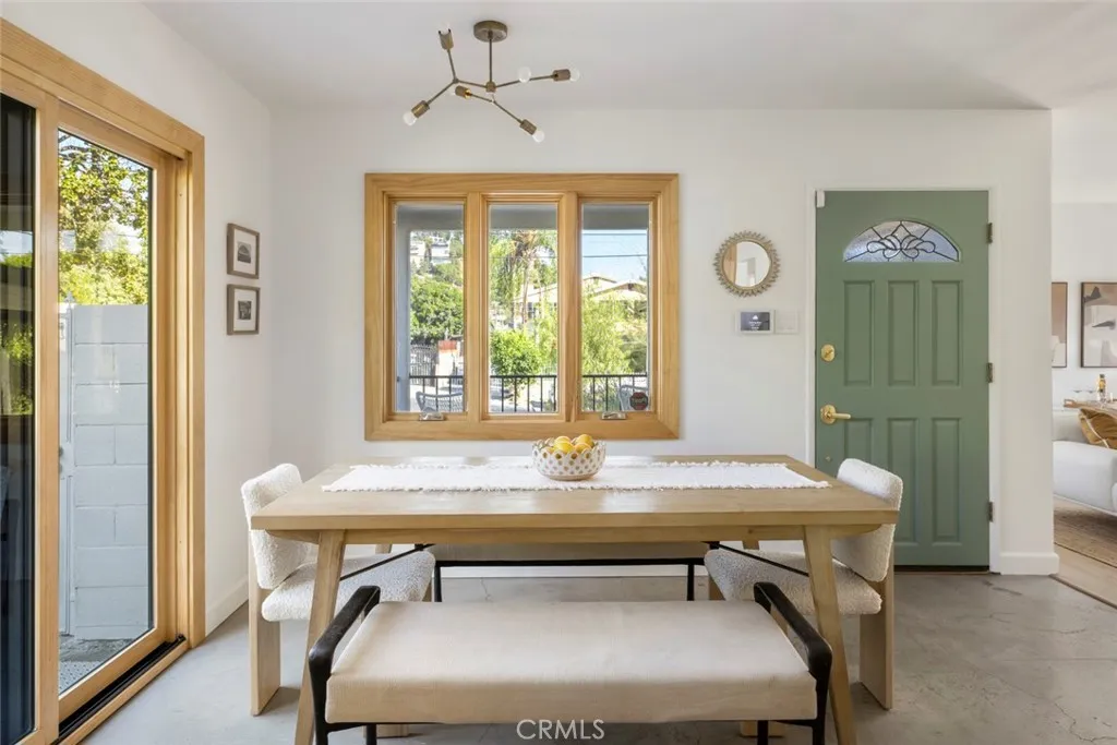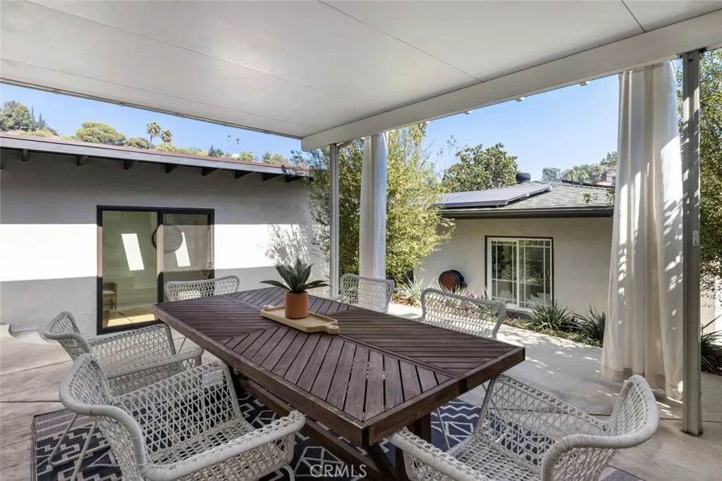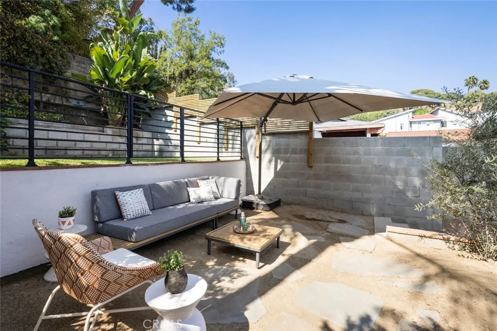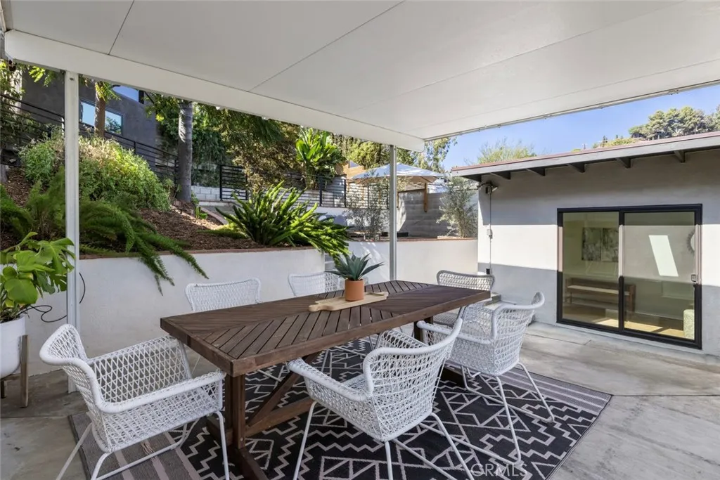 Tucked away on a quiet residential street, this beautifully updated three-bedroom, two-bath home blends mid-century character with modern comfort in one of Highland Parks most sought-after pockets. Walkable to an abundance of restaurants, nightlife, and shopping along York Blvd, it offers the ideal balance of vibrant city living and peaceful retreat. Step inside to an open-concept layout featuring a remodeled kitchen with quartz counters, high-end appliances, and sleek concrete floors that flow seamlessly into the dining area. Sliding glass doors open to a shaded patio with a retractable awningperfect for indoor-outdoor entertaining. Adjacent to the dining area, the living room centers around a gas fireplace, with brand-new floors running throughout the home for a cohesive, contemporary feel. Tucked at the back of the house, the primary bedroom offers a wall of built-in closets and an ensuite bathroom, along with direct access to the backyard. Two additional bedrooms share a stylish hallway bathroom with double sinks, providing comfort and functionality for family or guests. Outside, the beautifully landscaped, multi-level backyard is a peaceful sanctuary with thoughtful terracing and hillside views. Enjoy multiple zones for dining, relaxing, and gardeningall amid fruit trees, drought-tolerant plants, and a lush lawn. A detached, climate-controlled office with skylights and Gigabit fiber internet offers an ideal work-from-home or creative space, while a separate tool shed at the upper terrace provides extra storage or flexible use. Pet owners and families with young childre