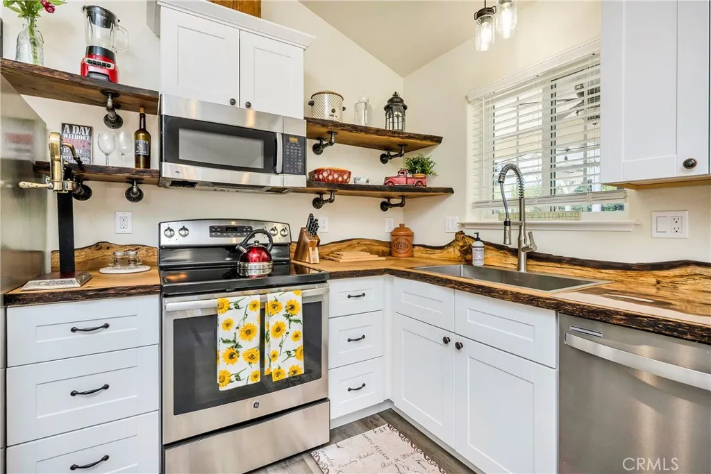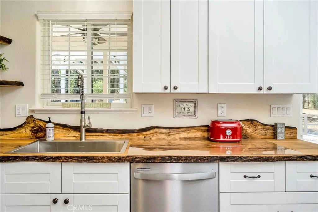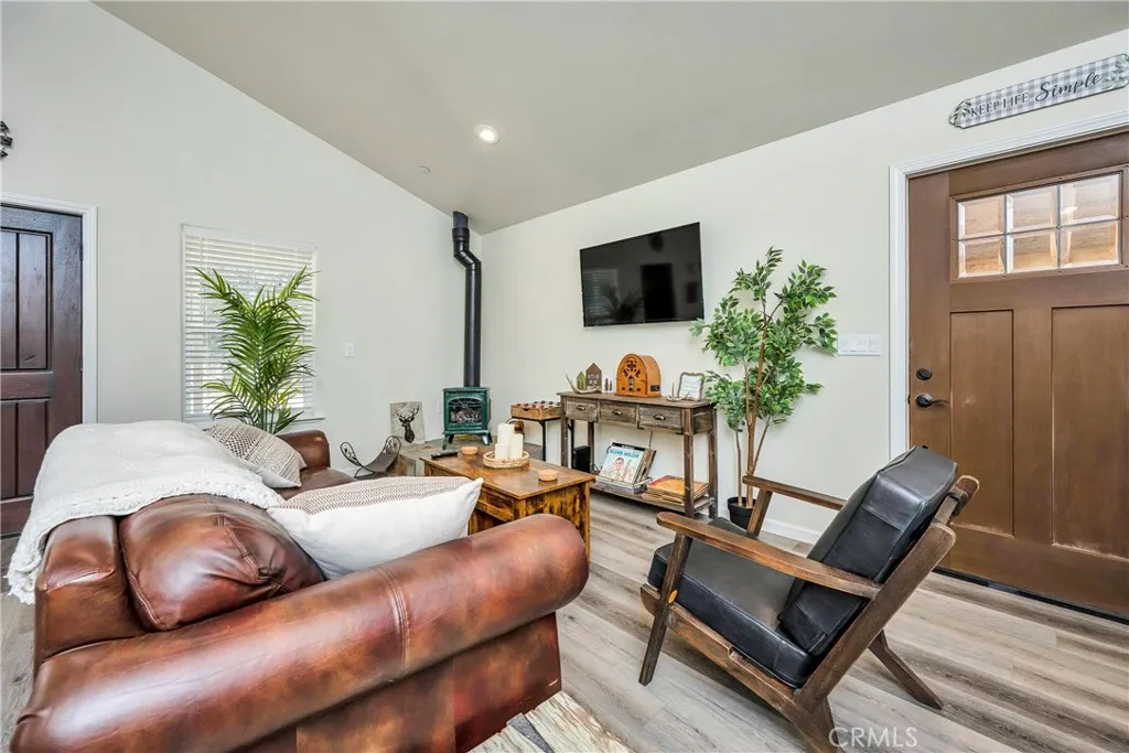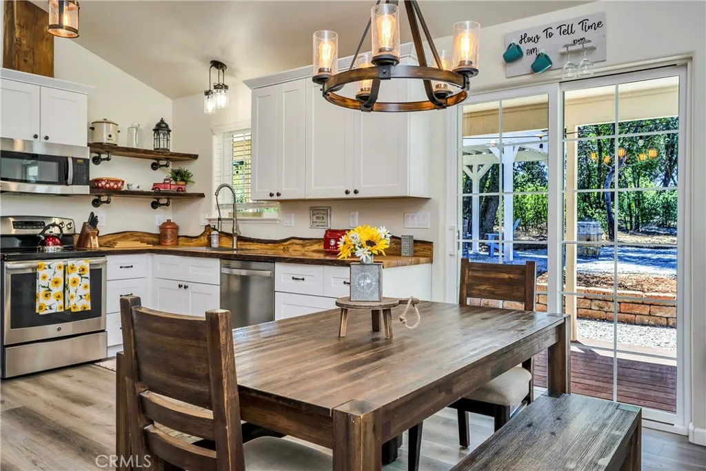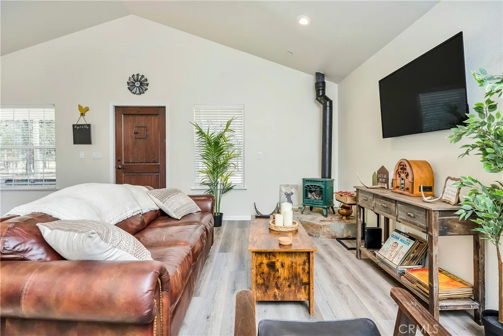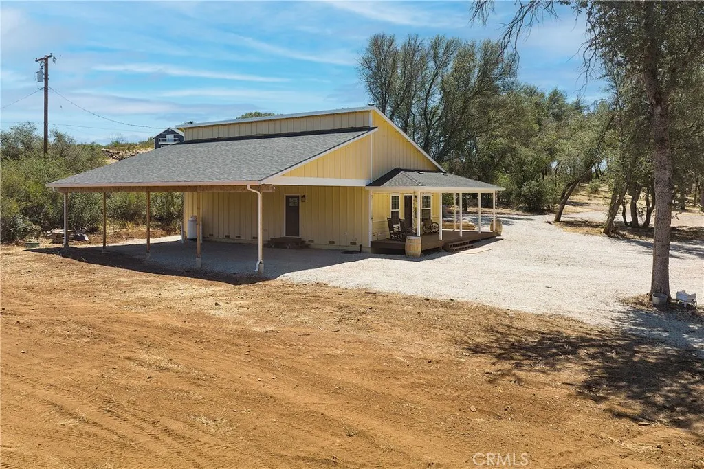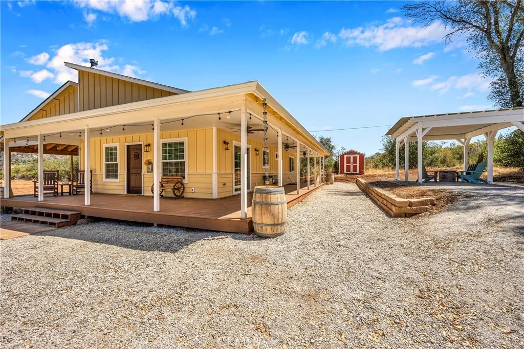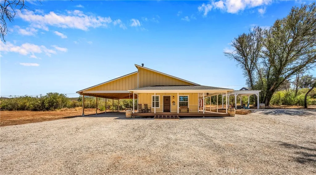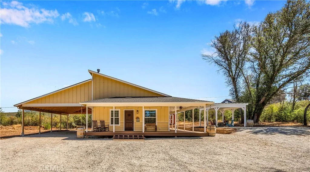 Welcome to your own peaceful retreat on 5.36 private acres, where modern farmhouse charm blends seamlessly with the comforts of contemporary living. Enter through the custom-built steel gate and follow the meandering driveway to a beautifully crafted 2-bedroom, 1-bath cottage thats full of style and warmth. Inside, the open-concept great room greets you with soaring vaulted ceilings, luxury vinyl plank flooring, and an abundance of natural light. A cozy gas fireplace set on a raised slate hearth creates the perfect gathering space. The kitchen is a true standoutfeaturing custom live-edge wood countertops & open shelving milled from local Cobb Mountain lumber, stainless steel appliances, and a large farmhouse sink. The bathroom is equally impressive with a deep soaking tub/shower combo, floor-to-ceiling faux wood tile, and a custom vanity topped with a hammered copper sink basin. Both bedrooms are spacious, featuring recessed lighting, stylish ceiling fans, and oversized closets. A dedicated laundry room adds everyday convenience, and efficient mini-split systems keep the home comfortable year-round. Relax on the covered wrap-around porch with ceiling fans and lighting, or entertain under the nearby pergola seating area. The attached oversized carport offers flexibilityadd a third bedroom, bonus living space, & garage if desired. Head up the driveway further to a second cleared building site with an existing septic systemideal for a main and/or secondary home with panoramic views of the surrounding valley, mountains, and vineyards. An RV parking pad with septic hookup, frees