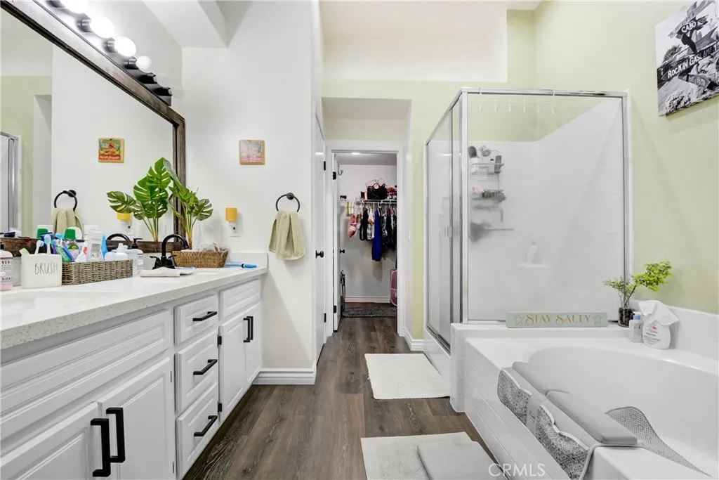 Step inside this beautifully updated condo in the sought-after First Edison Community of Ontario where comfort meets convenience! The open floor plan features soaring ceilings, a bright and airy living room with a custom fireplace, and a spacious kitchen that flows seamlessly to your private patio perfect for morning coffee or dining outdoors. Upstairs, the primary suite feels like a retreat with high vaulted ceilings, a spa-inspired bath with dual vanities, separate shower and soaking tub, and a generous walk-in closet. The second bedroom offers its own private bath, and the loft can easily serve as a third bedroom, home office, or cozy reading nook. Enjoy direct access to a two-car garage, a separate laundry room, and community perks including two sparkling pools, spa, picnic areas, playgrounds, and lush greenbelts. HOA includes water and trash. Conveniently located near shopping, dining, parks, and freeways this home has everything youve been looking for!