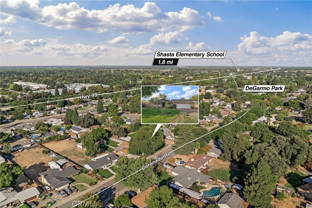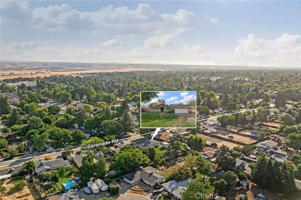 Welcome to 3131 Coronado Roada move-in-ready Chico charmer that blends comfort, efficiency, and outdoor living on a spacious 0.30-acre lot in a peaceful, low-traffic neighborhood. This single-level 3-bedroom, 1-bath home has been thoughtfully refreshed inside and out, offering timeless appeal and modern convenience. Inside, youll find inviting living spaces with luxury vinyl plank flooring in the main areas and plush carpet in the bedrooms. The interior has been tastefully painted and updated with new baseboards, door hardware, and fixtures. The kitchen includes built-in pantry shelving, and the painted brick fireplace adds warmth and charm. A new HVAC system keeps the home comfortable year-round. Outside, a newly poured concrete patio opens to a beautifully landscaped backyard with lush lawn, sprinklers, bark borders, and a mix of mature oak and tulip trees. In the back yard you'll find young fruit trees including fig, kumquat, pomegranate, mandarin orange, peach, nectarine, and lemon as well as three raised garden beds with a drip irrigation system, offering a gardeners dream setup. The fenced yard includes double gates for easy access, plus two storage sheds, a large chicken coop, and a driveway with space for RV or boat parking. Practical updates include a 19-panel owned solar system, an insulated automatic garage door, and a replaced water heaterenhancing both comfort and efficiency. Situated on a quiet street near a scenic bike and walking path, this home offers close proximity to schools, shopping, and all of Chicos conveniences. Appliances, a mower, and a weed eater