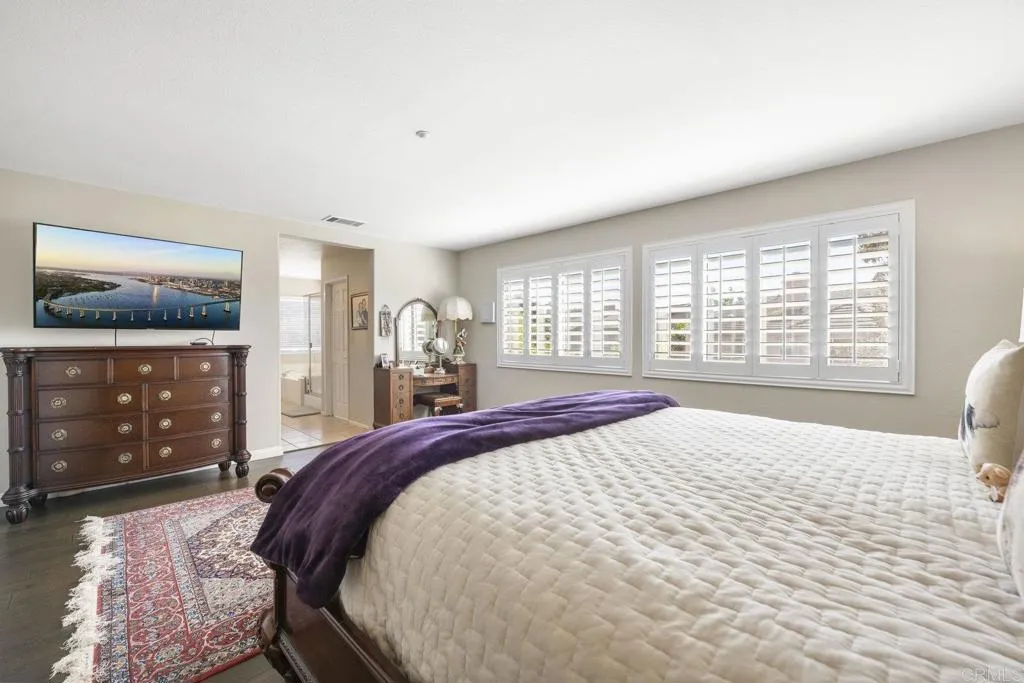 Welcome to your dream home in the heart of 4S Ranch, a highly sought after community celebrated for its family friendly atmosphere, top rated schools, and vibrant neighborhood amenities. This stunning 4 bedroom, 3 bath residence features elegant design, paid off solar, thoughtful upgrades, and a bright, open floor plan perfect for entertaining and everyday living. Step inside to discover spacious living and dining areas enhanced by beautiful flooring, designer lighting, and plantation shutters that allow natural light to fill the space. The fully upgraded gourmet kitchen is a chefs delight with luxurious quartz countertops, Wolf appliances, a Sub Zero refrigerator, and an oversized island with pendant lighting and breakfast seating. The open concept kitchen flows seamlessly into the family room, creating the perfect setting for connection and relaxation. On the main floor, you will find a highly desirable bedroom and a beautifully remodeled full bathroom, offering exceptional flexibility for guests, multi-generational living, or a private home office. Upstairs, the spacious primary suite provides a peaceful retreat with an ensuite bath, while the well-appointed secondary bedrooms offer comfort and versatility. The loft area presents excellent potential to be converted into an additional bedroom, and the third car garage can also be transformed, allowing for up to six bedrooms total. The exterior boasts charming curb appeal with a manicured front lawn and a private backyard ideal for entertaining, gardening, or simply relaxing. Minutes from parks, top schools, shopping, dini